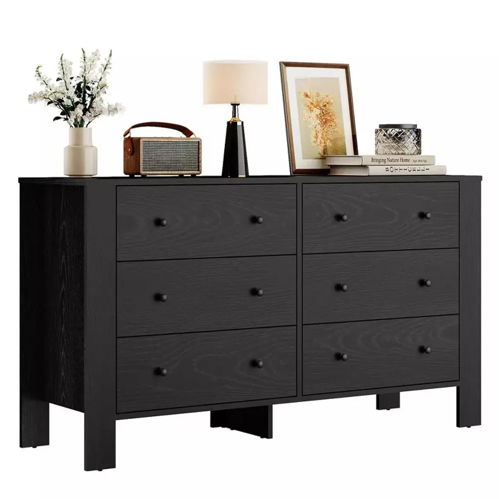 A black-finished oak veneer dresser brings storage space to the bedroom with 6 roomy drawers.