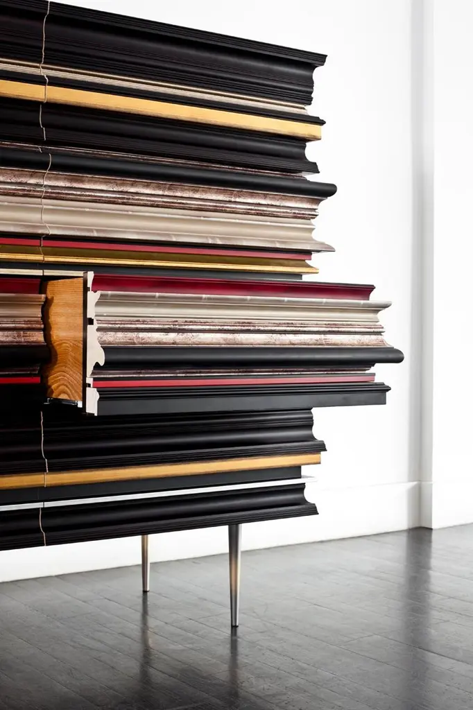 Frame dresser red by Luis PonsDimensions: W 91.5 x D 53.5 x H 112 cmMaterials: Metal, wood, bronzed, hand-craftedAlso available in different colorsFine crafted wood moldings are applied to the whole piece, concealing drawers and acting as handles. The process to achieve the finish of the piece is the result of the combination of multiple moldings with different highlights and textures, showing the natural character of the wood and lacquer in an unexpected way.Luis Pons has gained international recognition for his designs of hotels, private residences, and commercial properties as well as furniture and home interior objects. His designs have been featured in leading domestic and international publications including Architectural Digest, Arquitectura Y Diseño, Architecture & Wohnen, Balthazar L’Magazine de l’homme, Casas, Elle Décor, Hotel Design, House & Garden, Interior Design, Metropolitan Home and Vogue. His works appear in numerous design books, including THE TROPICAL MODERN HOUSE (Rizzoli) and MIAMI INTERIORS (Taschen) and have been featured at leading international art and design expositions, including Art Basel, (Basel, Switzerland and Miami, USA) and the International Furniture Fair (Milan, Italy).