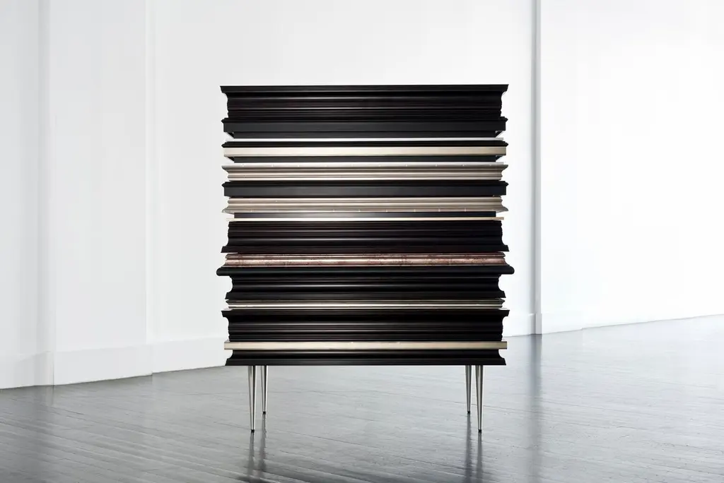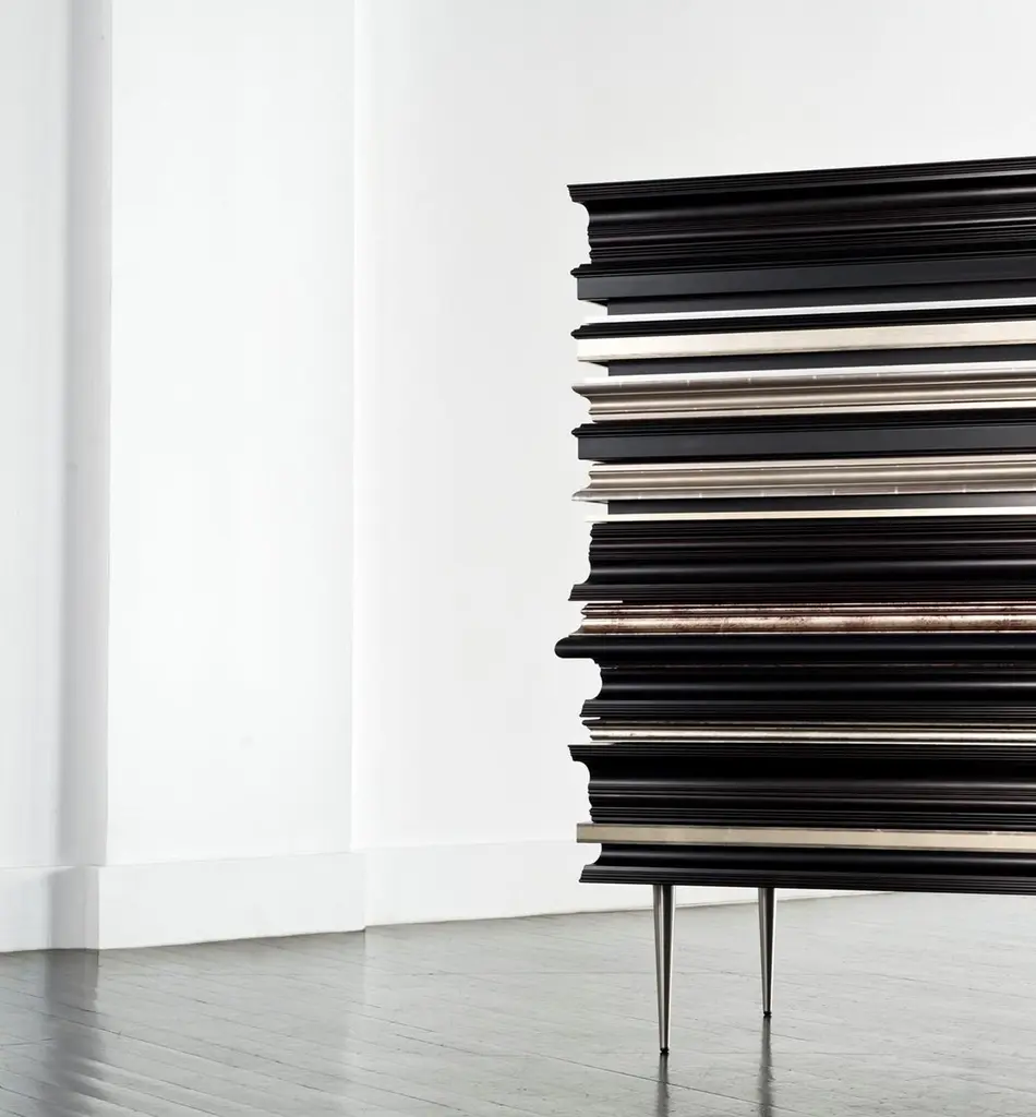 Frame dresser silver by Luis Pons.Dimensions: W 91.5 x D 53.5 x H 112 cm.Materials: Metal, wood, bronzed, hand-crafted.Also available in different colors.Fine crafted wood moldings are applied to the whole piece, concealing drawers and acting as handles. The process to achieve the finish of the piece is the result of the combination of multiple moldings with different highlights and textures, showing the natural character of the wood and lacquer in an unexpected way.Luis Pons has gained international recognition for his designs of hotels, private residences, and commercial properties as well as furniture and home interior objects. His designs have been featured in leading domestic and international publications including Architectural Digest, Arquitectura Y Diseño, Architecture & Wohnen, Balthazar L’Magazine de l’homme, Casas, Elle Décor, Hotel Design, House & Garden, Interior Design, Metropolitan Home and Vogue. His works appear in numerous design books, including THE TROPICAL MODERN HOUSE (Rizzoli) and MIAMI INTERIORS (Taschen) and have been featured at leading international art and design expositions, including Art Basel, (Basel, Switzerland and Miami, USA) and the International Furniture Fair (Milan, Italy).