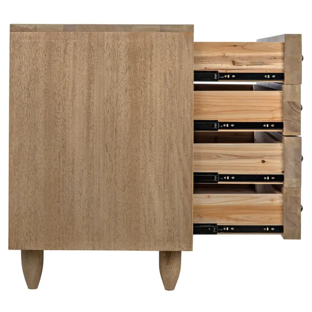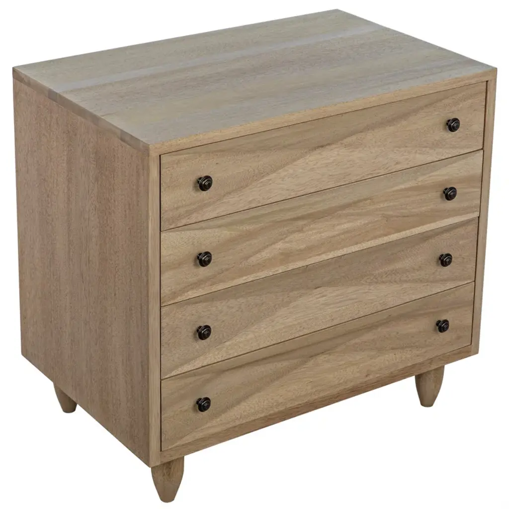 This accent chest embodies a fusion of modern design and traditional craftsmanship. Its three spacious drawers offer ample storage, making it a versatile addition to any room, from the living area to the bedroom. The hand-rubbed black finish adds a touch of sophistication, while the solid wood construction ensures enduring appeal. Whether used to store linens, electronics, or personal treasures, this chest is as functional as it is stylish. Its compact size makes it ideal for smaller spaces, adding elegance without overwhelming the room. Noir is a handmade line. It is normal for items to vary in dimension, finish and distressing. It may show handcrafted workmanship which makes every piece unique and distinct. It does not affect durability or structural integrity.
