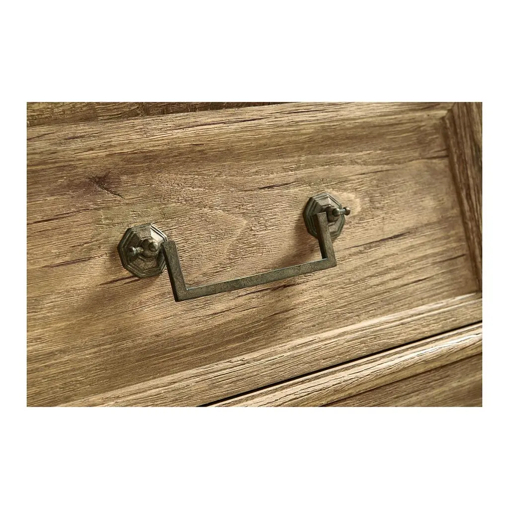 French Louis XVI Style Commode, made with chestnut in a natural stripped finish that marries effortlessly with custom-cast hardware. Turret corners, fluted styles, three long drawers and turned and tapered legs. A versatile piece that elevates both traditional and modern sophisticated interiors.Dimensions: 42" W x 20" D x 34" H.