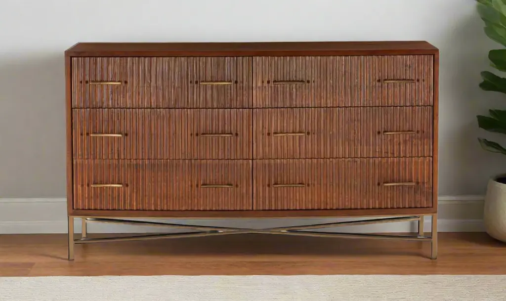 Fresno Fluted 6-drawer Dresser, Terra Brown Oak