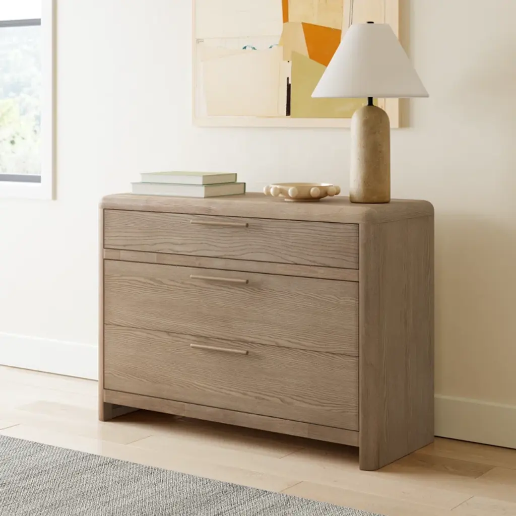 Designed to harmonize with your space, the Furano collection seamlessly blends soft edges, natural materials, and thoughtful craftsmanship. Ash wood veneer in a soft ginger root finish takes center stage, showcasing natural wood grain formed over decades. Cylindrical wooden pulls and a choice of plush upholstered or platform beds in the collection allow you to curate a haven of pure serenity.