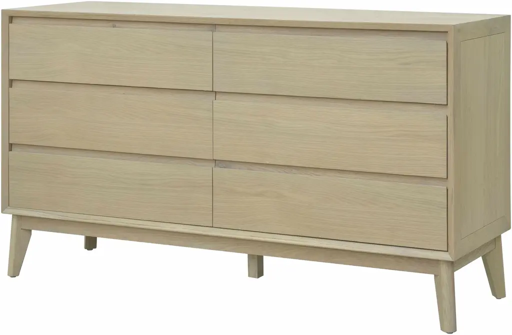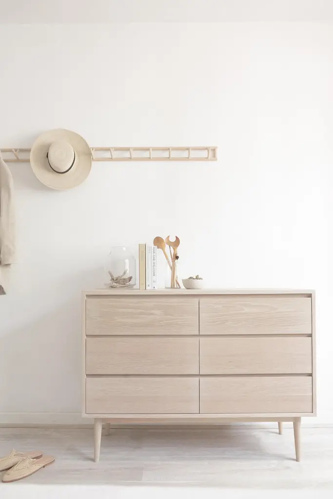 The Gala Chest of Drawers in its contemporary style suggests warmth and practicality. Its raised design lightens its volume and puts wood as the principal material in different forms, wood veneer with solid wood legs. Production time: 6-8 weeks for items without marble / 13-14 weeks for marble pieces. Shipping +10 additional business days. Casa Quieta uses natural materials such as woods, stones, fabrics etc. These materials may vary in tone, veining, and cavities due to their natural origin. This is part of the inherent beauty of materials and is not considered a flaw. Due to the artisan nature of our production process, there is a +/- 3mm measurement tolerance.