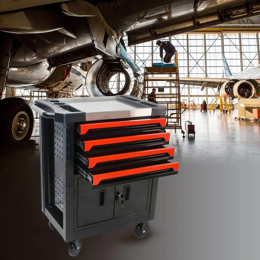 Garvee 4 Drawers Multifunctional Tool Cart With Wheels, Rolling Tool Chest Storage With Lockable Drawers & Door, For Warehouse Garage Workshop