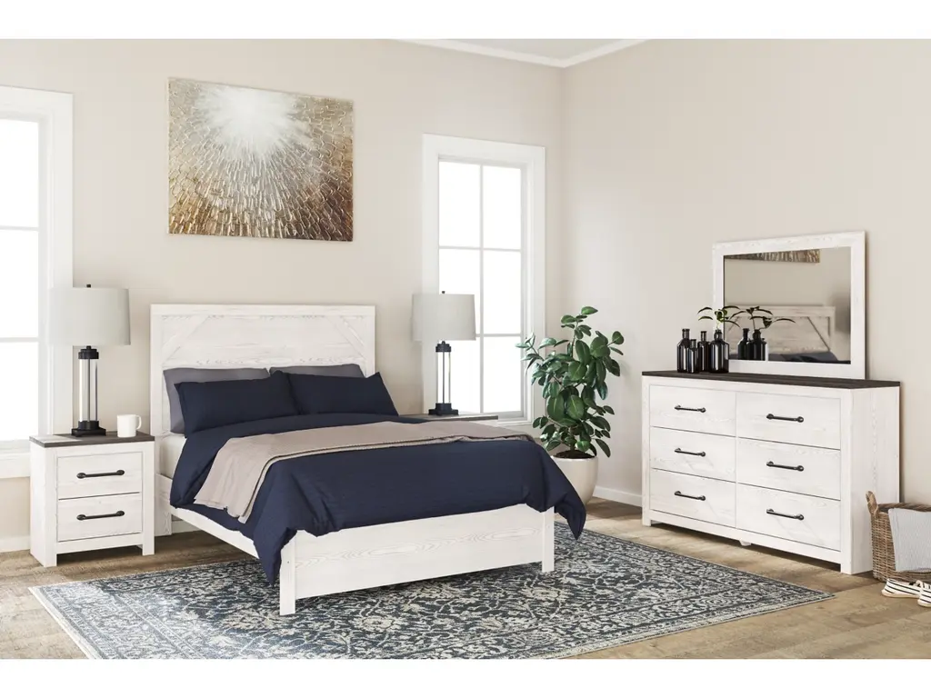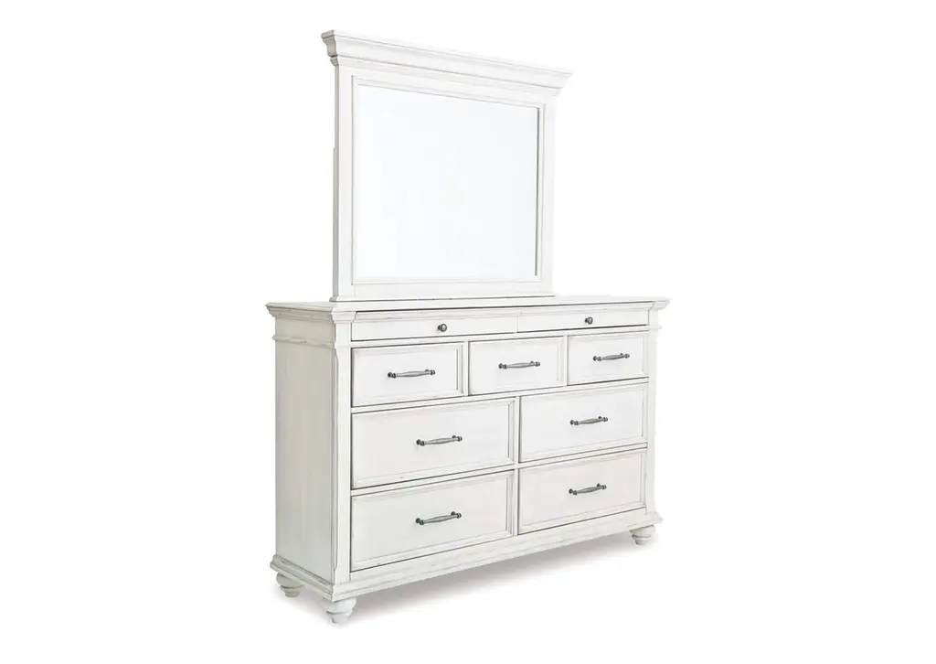 Cool, clean and casually modern. The Gerridan dresser and mirror’s wispy whitewash and gray finish sets the tone for your calming sanctuary. Large linear pulls add dimension and authenticity. Six smooth-gliding drawers neatly accommodate your bedside needs.