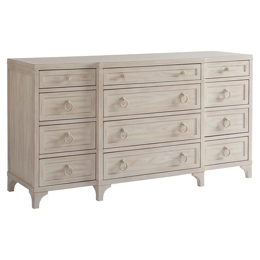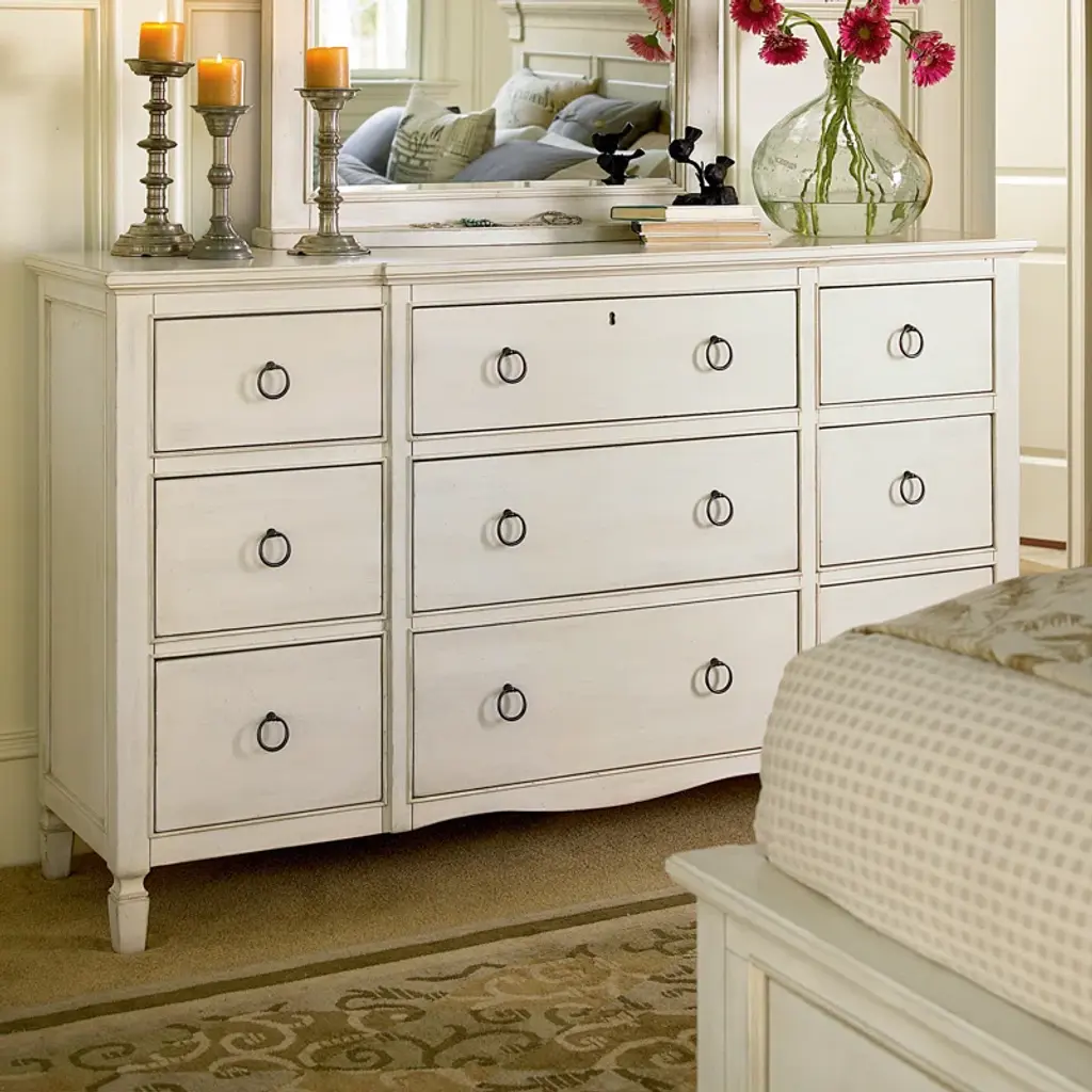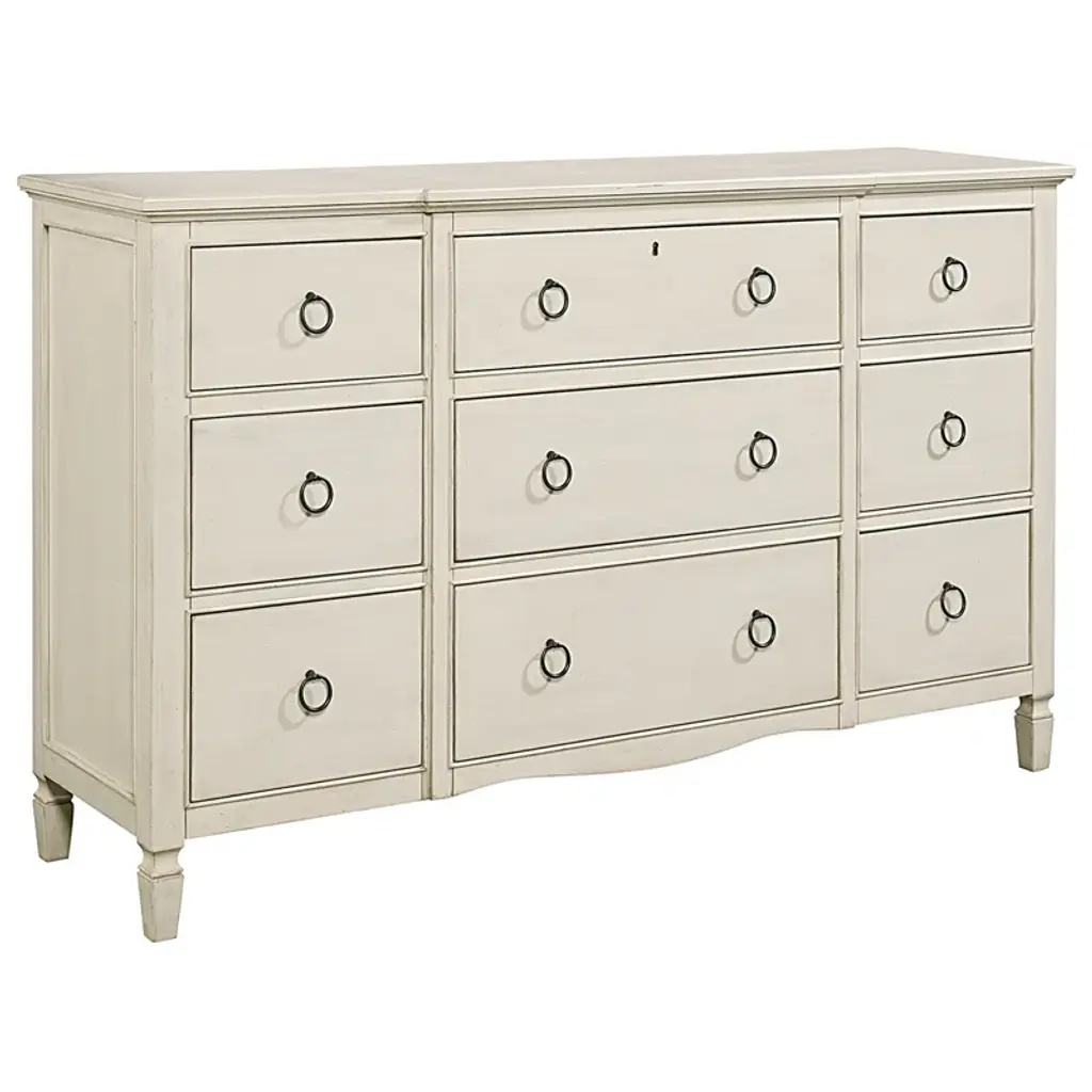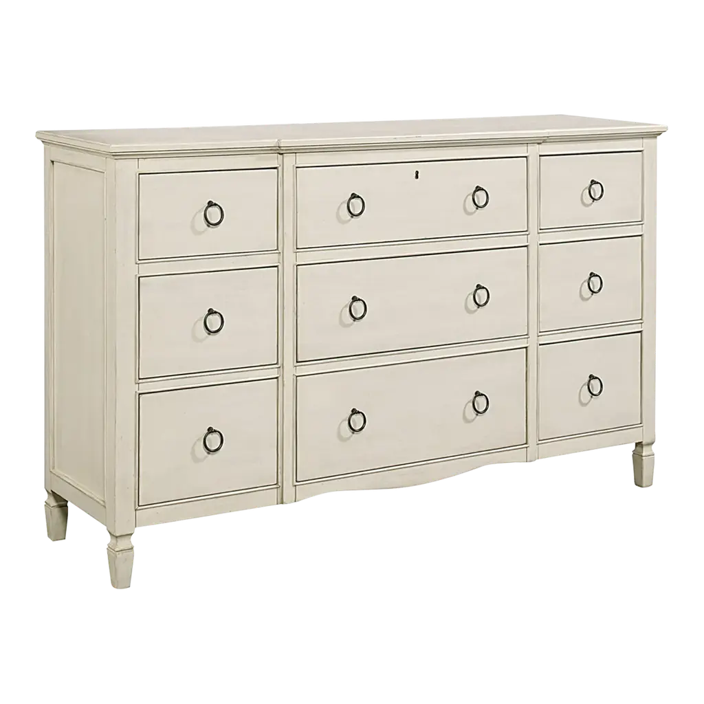 The getaway dresser is functional style at its finest, featuring nine spacious drawers accented with sleek gold ring pulls.