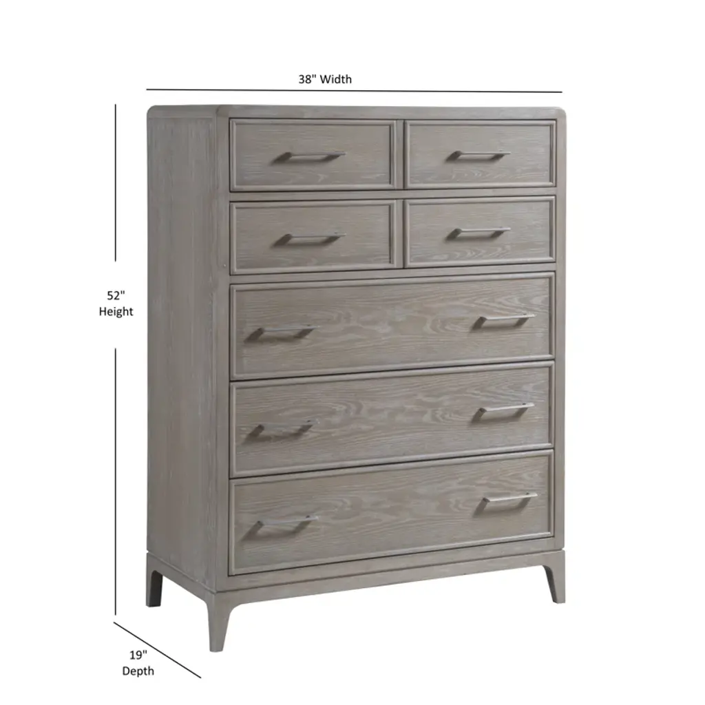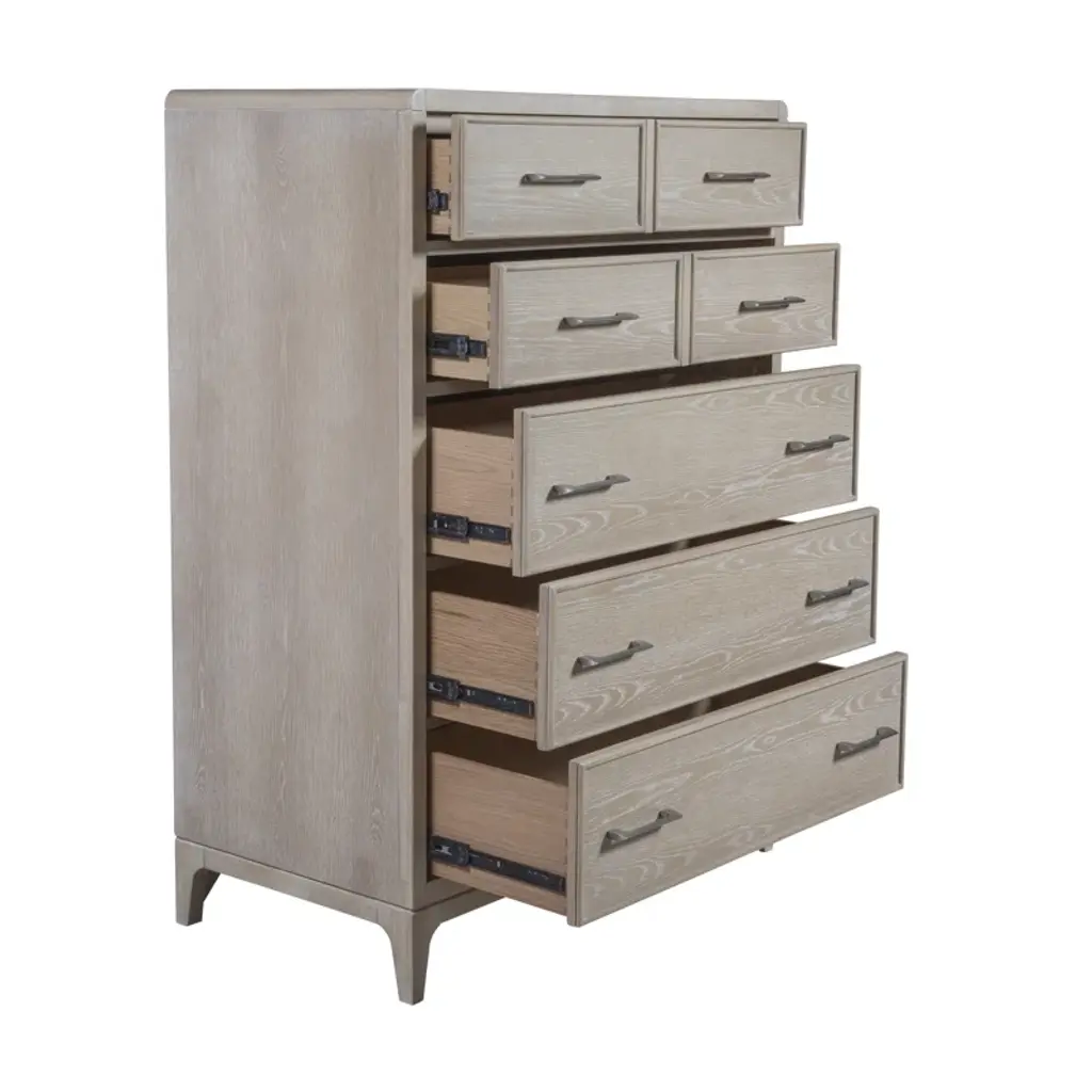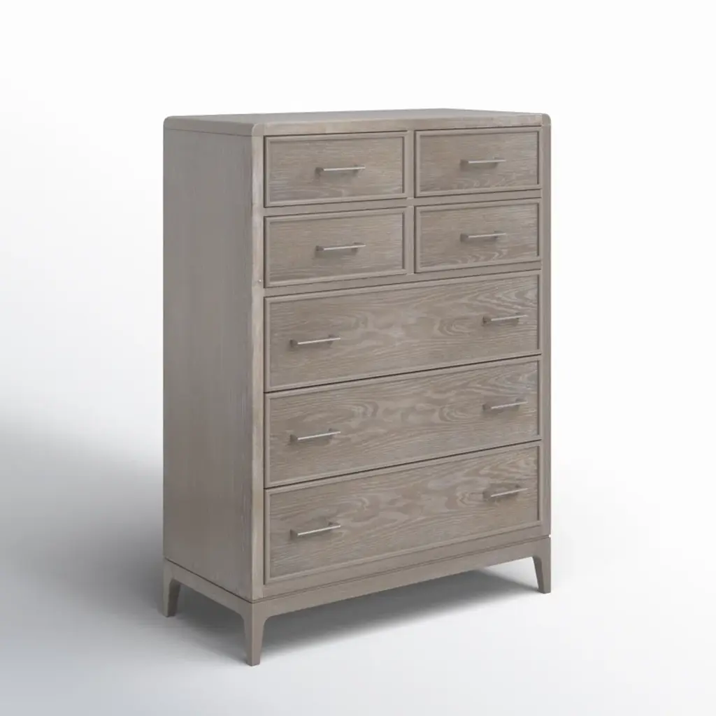 Elevate your bedroom with this seven-drawer dresser, a blend of engineered and solid wood that offers ample storage in a vertical orientation. The oak veneer and rubberwood solids create a warm, rustic-inspired look, while the metal handles add a touch of sophistication. With full-extension glides and safety stops, these drawers provide easy access to your belongings. The wood scoring and rub-through distressing give it a well-loved appearance. Plus, a tipover restraint device is included for added peace of mind. Remember, this dresser is intended for home use only.