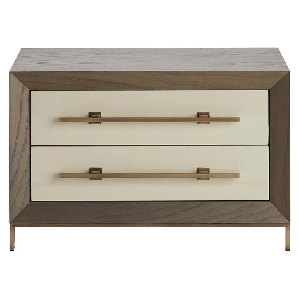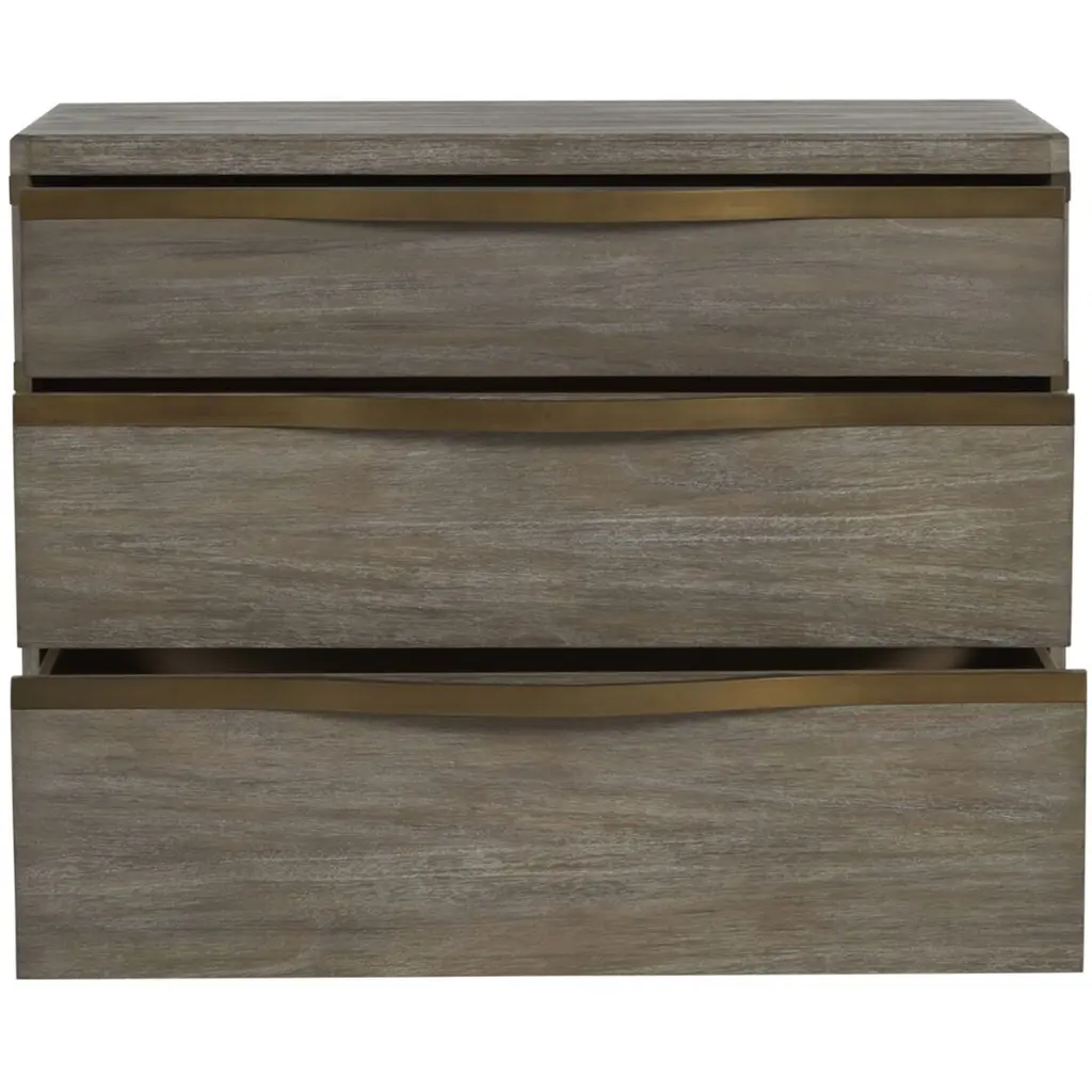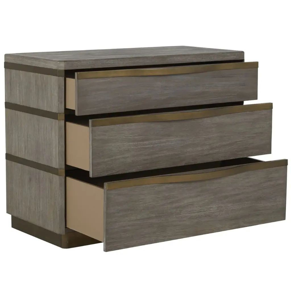 The Gillespie Chest embodies meticulous attention to detail, featuring slender metal bands that double as innovative drawer pulls, adding a sleek, contemporary edge. The chest's faceted edges and distinguished finish reflect the thoughtful design nuances that are known for, with undermount soft-close drawer glides enhancing functionality through subtle, user-friendly features.