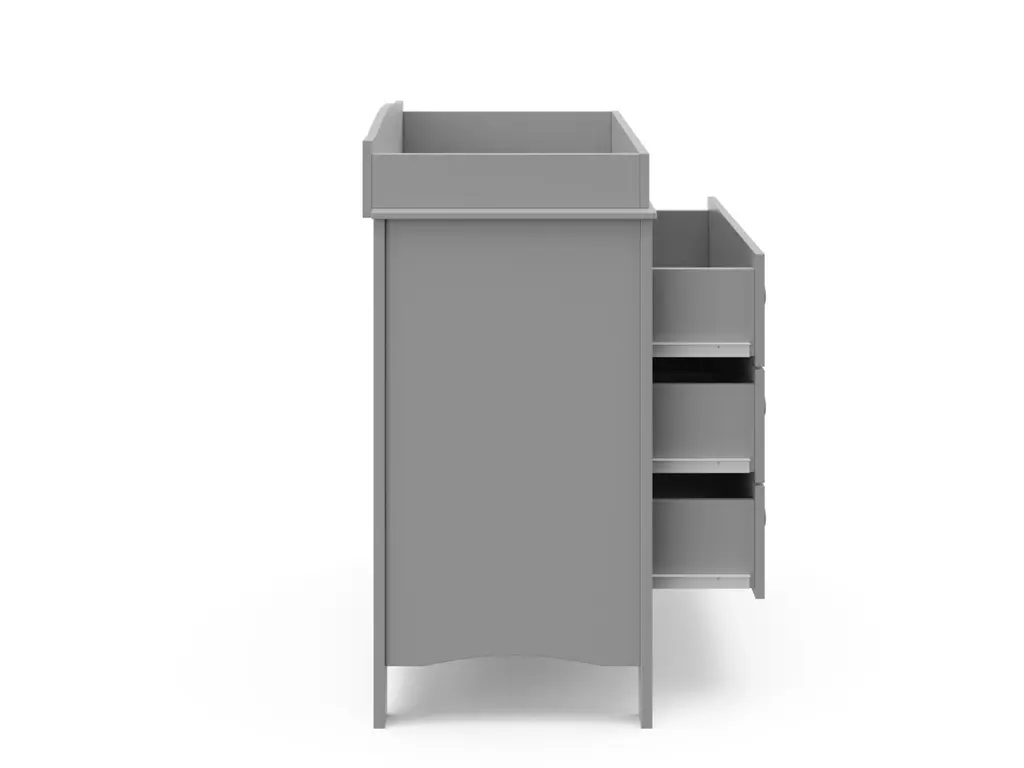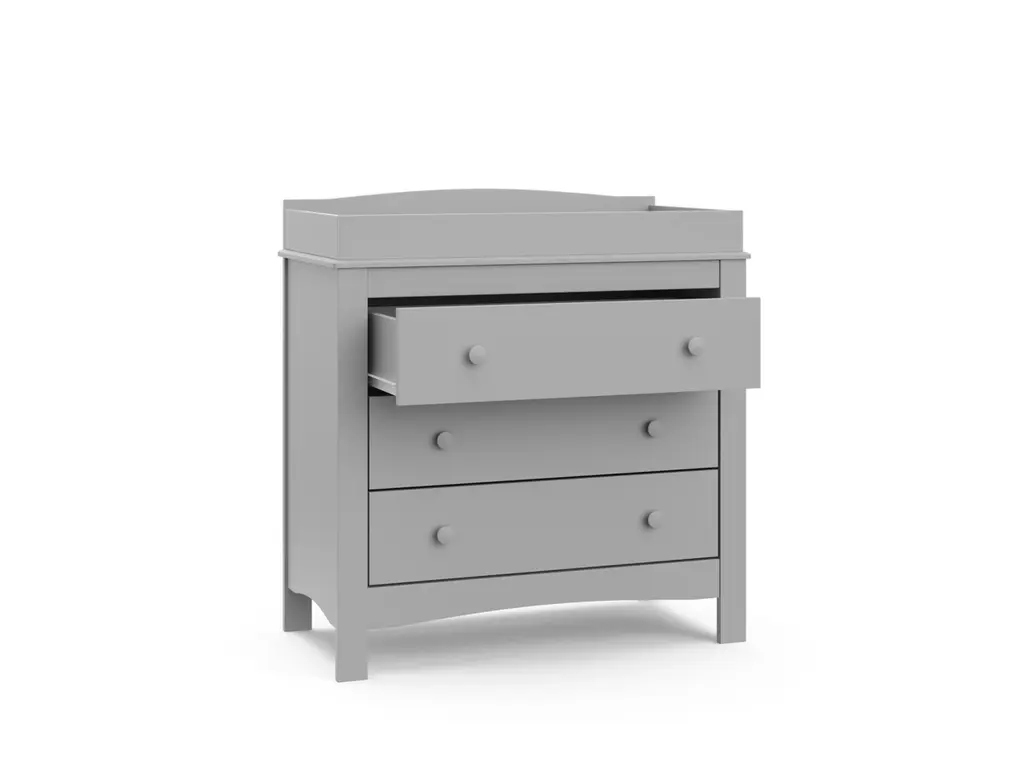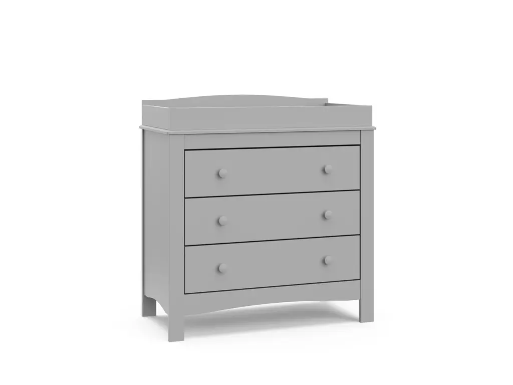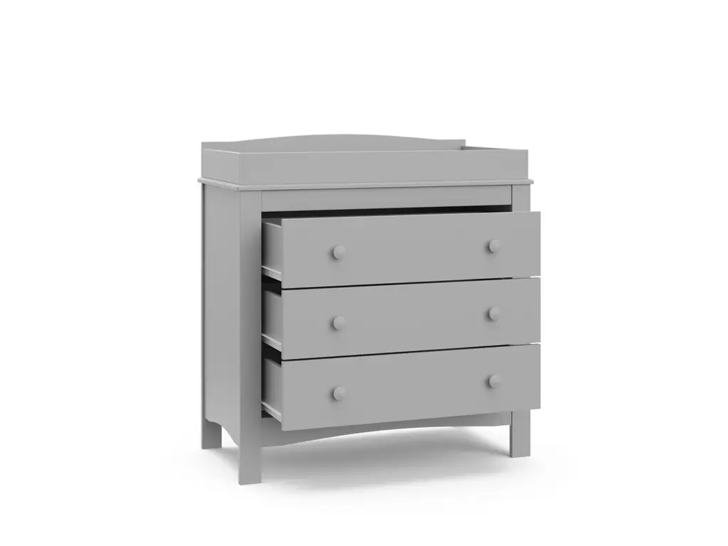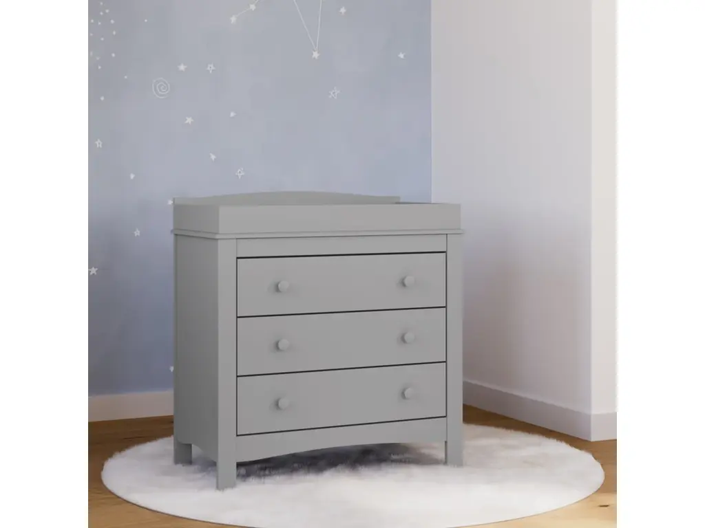 The Graco Noah 3 Drawer Chest with Changing Topper, the newest addition to Graco's family of chests and dressers and part of the Graco Noah Collection, is the perfect addition to your nursery or kids room. Featuring 3 spacious drawers to store and organize your nursery or bedroom essentials, the Noah is constructed with sturdy, durable, high-quality engineered wood - a warp-resistant and twist-resistant material that is sure to last the test of time. Also, the Noah includes an attached changing topper that has been designed to fit any standard-size changing pad. The Noah's quality construction includes smooth-gliding Euro-glide drawers with safety stops, and German cam locks. Also, the Noah's stain-resistant surface is easy to wipe clean, and its universal design and easy-to-match style makes it perfect for any nursery or kids room. For extra peace of mind, the Noah has been rigorously tested to meet or exceed all applicable federal safety standards and anti-tipping safety standards. Also, it's backed by a 1-year limited manufacturer's warranty and supportive Customer Care team. Easy assembly required.