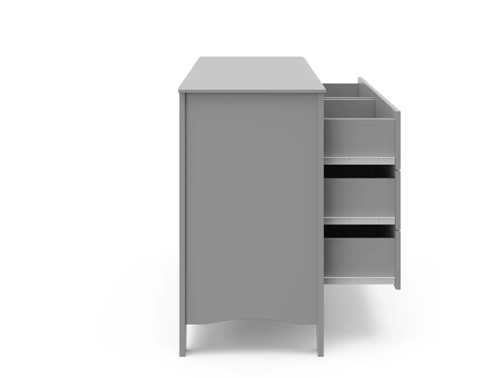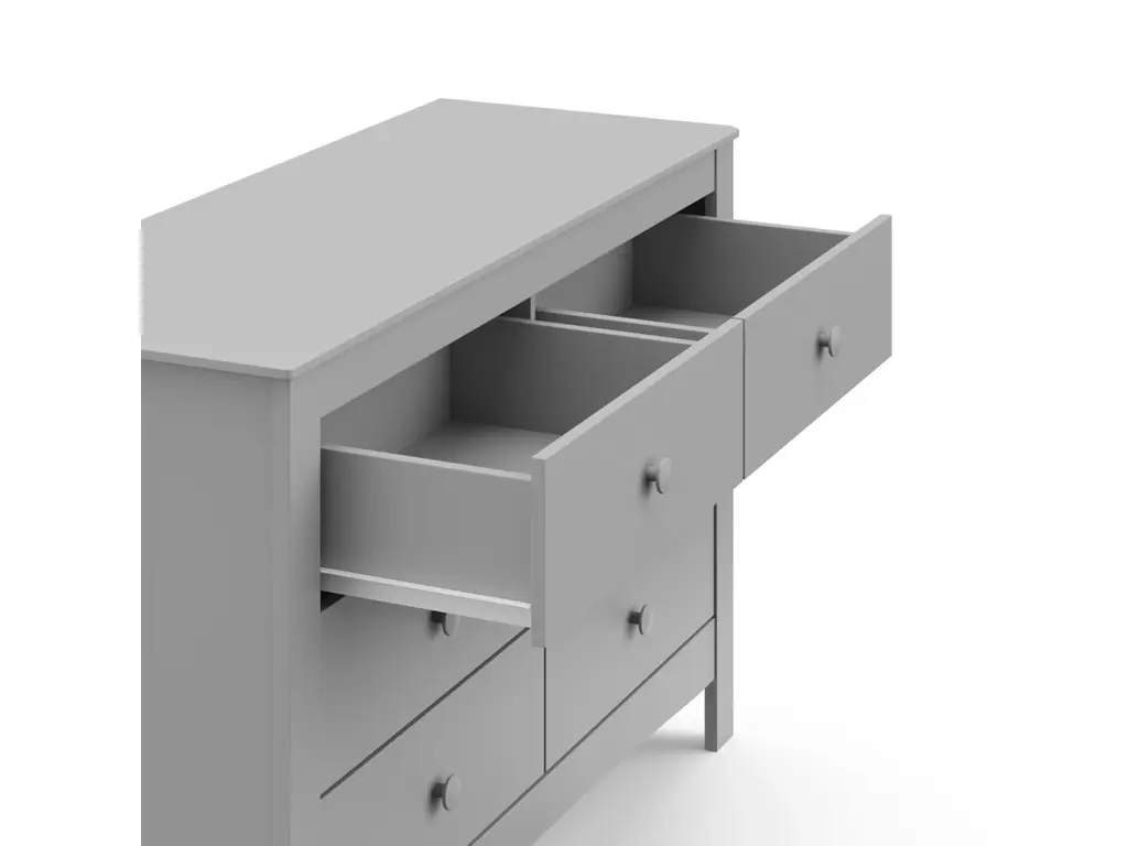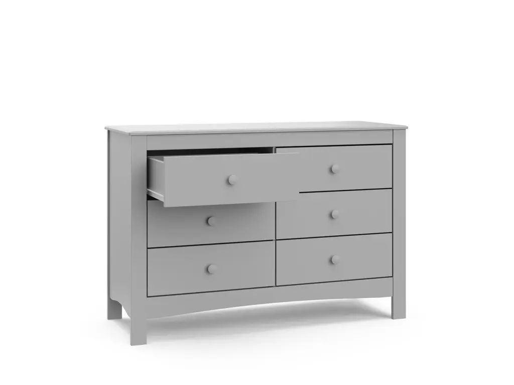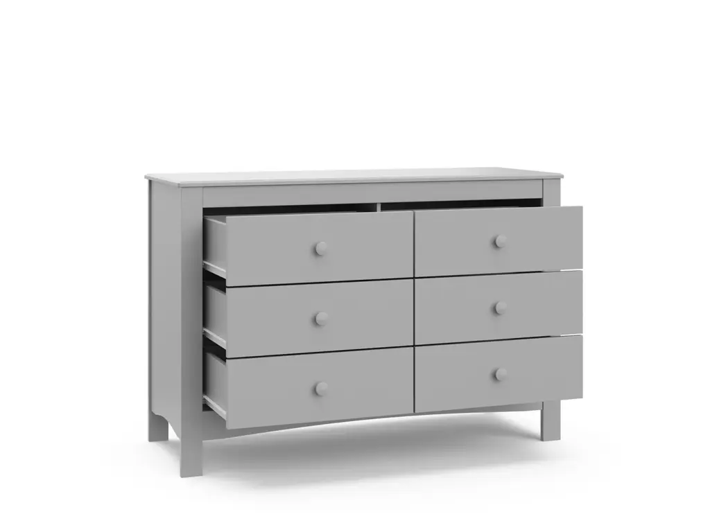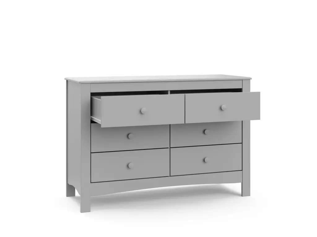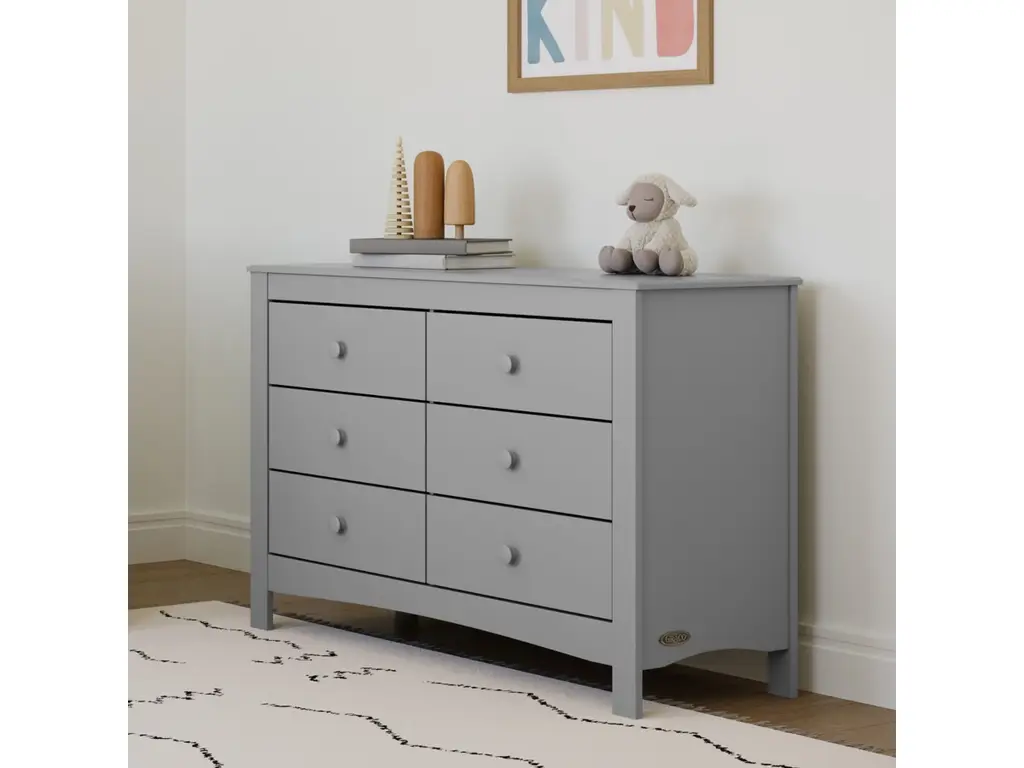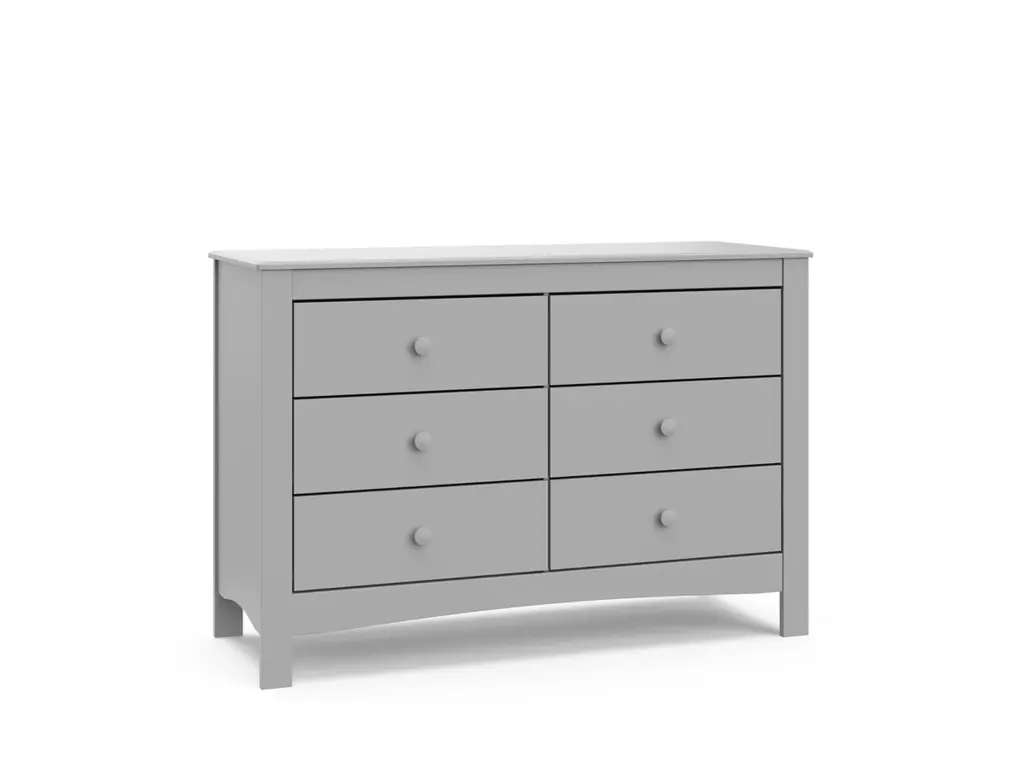 The Graco Noah 6 Drawer Double Dresser, the newest addition to Graco's family of chests and dressers and part of the Graco Noah Collection, is the perfect addition to your nursery or kids room. Featuring 6 spacious drawers to store and organize your nursery or bedroom essentials, the Noah is constructed with sturdy, durable, high-quality engineered wood - a warp-resistant and twist-resistant material that is sure to last the test of time. The Noah's quality construction includes smooth-gliding Euro-glide drawers with safety stops, and German cam locks. Also, the Noah's stain-resistant surface is easy to wipe clean, and its universal design and easy-to-match style makes it perfect for any nursery or kids room. For extra peace of mind, the Noah has been rigorously tested to meet or exceed all applicable federal safety standards and anti-tipping safety standards. Also, it's backed by a 1-year limited manufacturer's warranty and supportive Customer Care team. Easy assembly required.