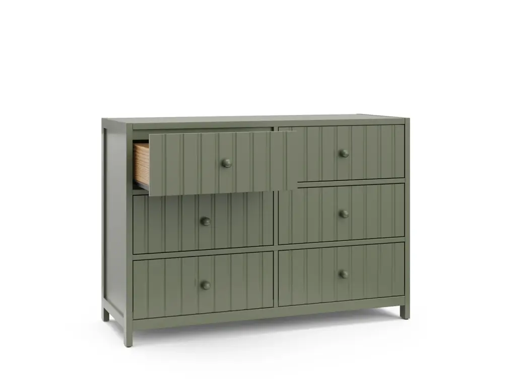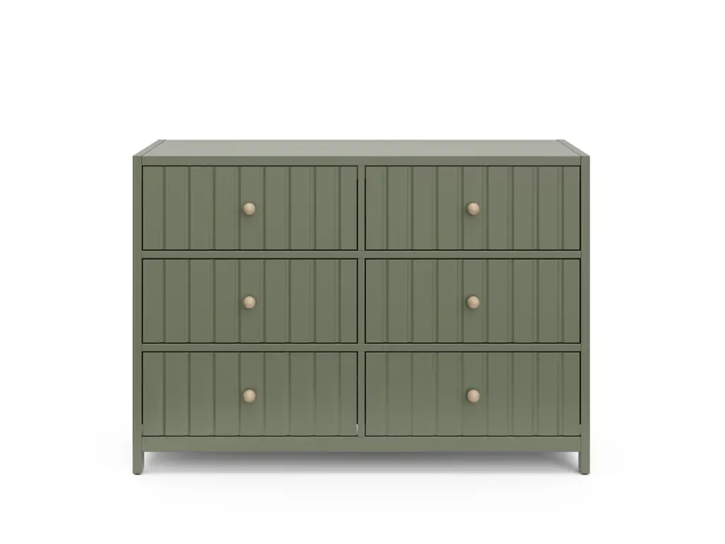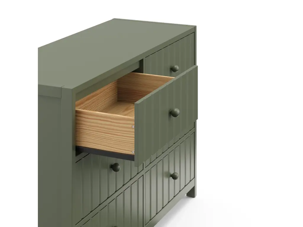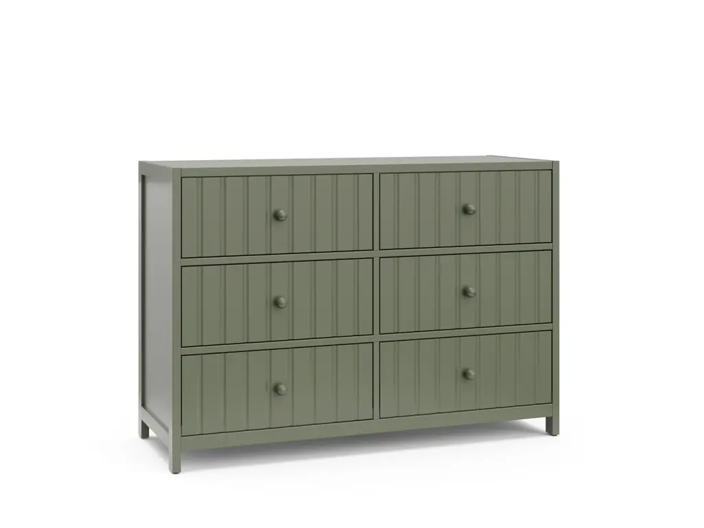 Introducing the Graco Teddi 6 Drawer Dresser, a timeless, transitional dresser with elevated drawer panels, the perfect addition to elevate your nursery or kids' bedroom and enhance its functionality and style. This chic and spacious dresser combines modern aesthetics with practical functionality, featuring subtle routing details with a subtle stripe motif that enhance its sophisticated appeal, adding a touch of elegance to your space. Let your personality shine by choosing your own knobs, as the Teddi includes two sets of knobs: painted knobs in the color of the dresser for a monotone look, or driftwood knobs for a pop of two-tone style. With both painted knobs and driftwood knobs included, the Teddi ensures seamless coordination with a variety of finishes and collections, allowing you to customize your space to your liking. Enjoy a hassle-free assembly experience with pre-installed drawer tracks, ensuring smooth-gliding drawers from the moment you unpack. The versatile design of the Graco Teddi 6 Drawer Dresser effortlessly complements any style of nursery or kids' bedroom furniture, providing endless possibilities for your space. Safety is paramount, and the Teddi prioritizes it with its innovative interlocking drawer system. By allowing only one drawer to open at a time, this feature promotes safety and prevents accidents. Paired with the included furniture tip-over restraint kit, the Teddi further reduces the risk of furniture tip-over incidents, providing peace of mind for you and your family.