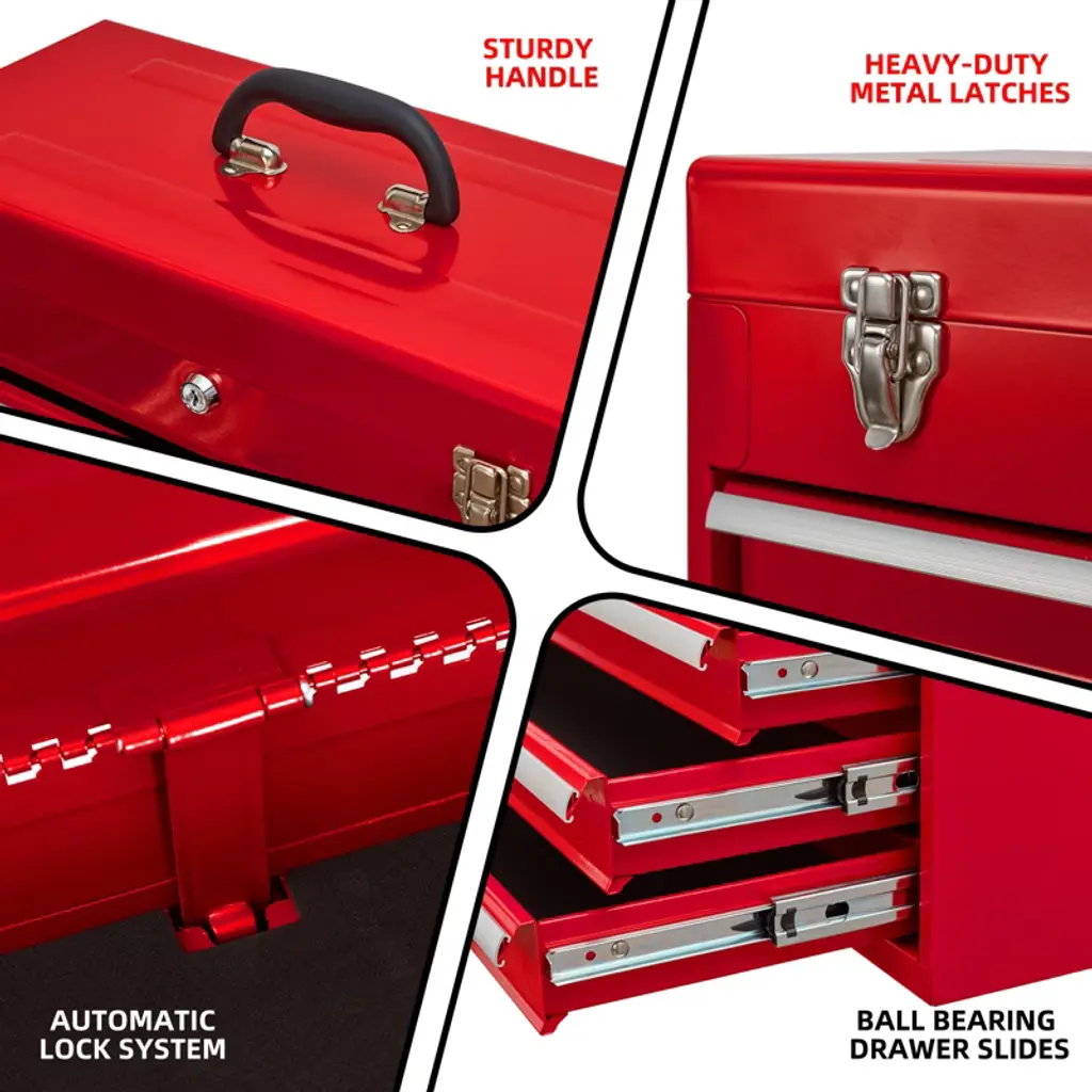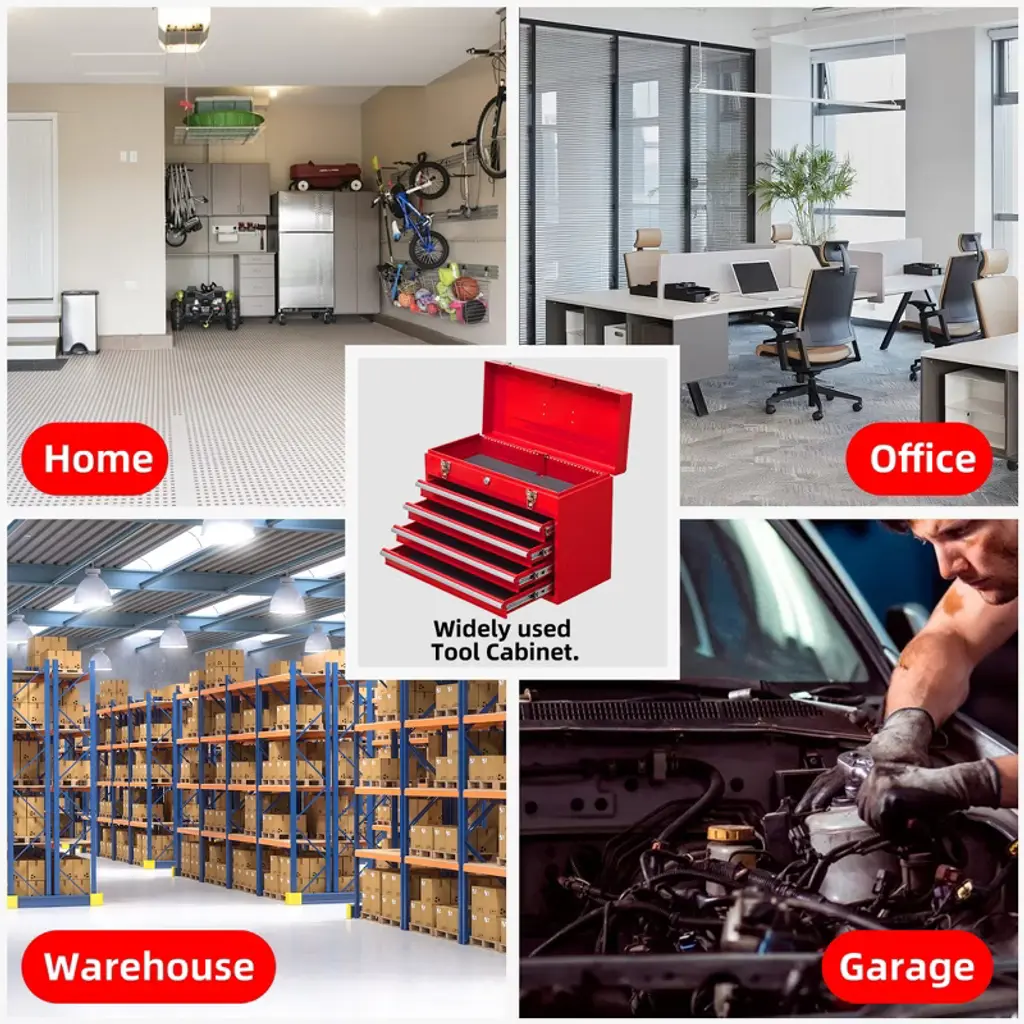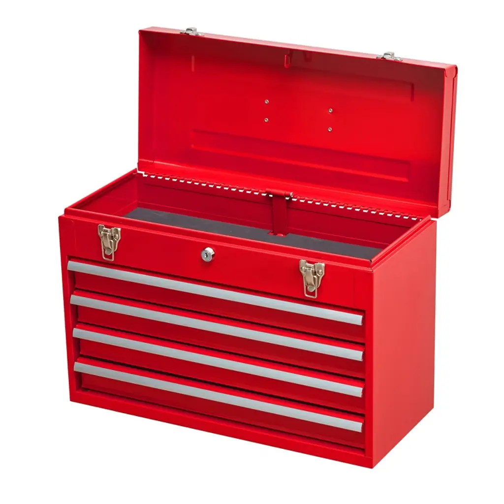 Gulches Metal Tool Box With 4 Drawers, Portable Steel Tool Chest With Cylinder Lock, Latch Closure, Liner For Garage, Warehouse, Outdoor, Red