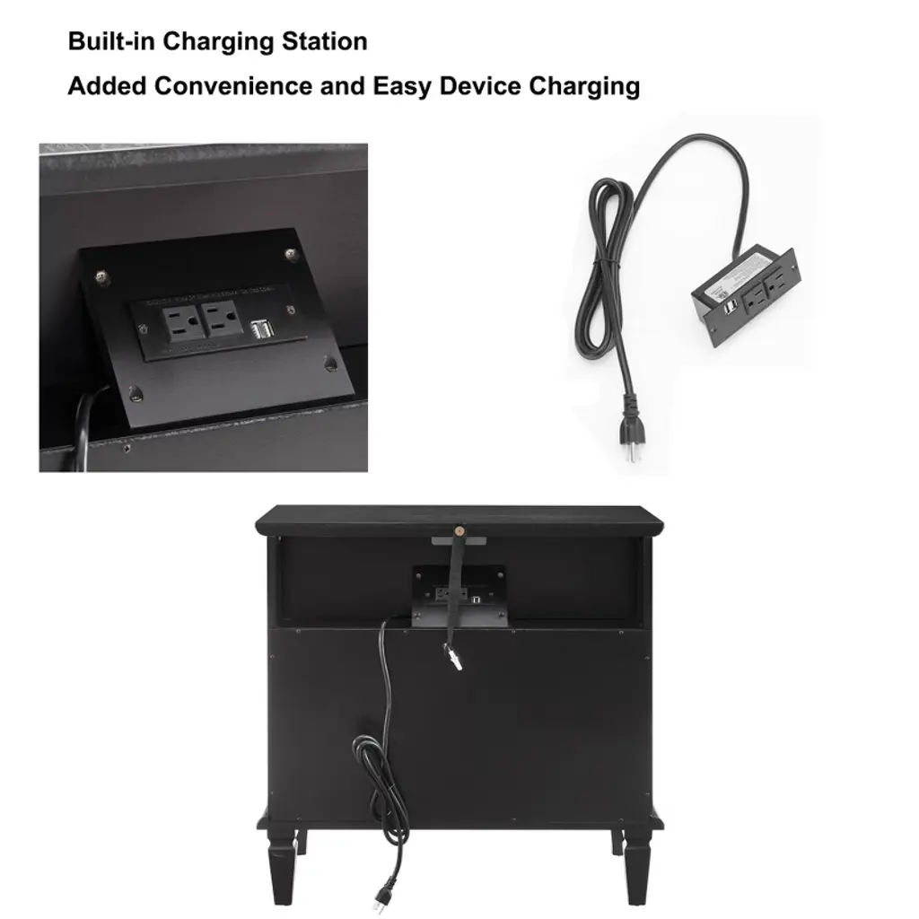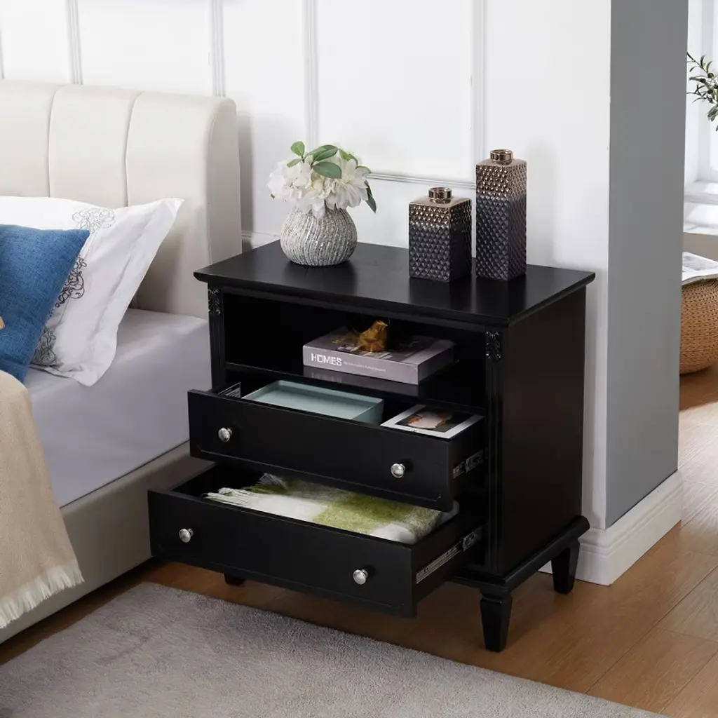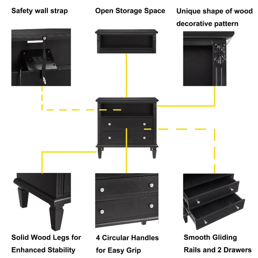 Gulches Open Space And 2 Drawers Dresser Nightstand,farmhouse End Table£¬black