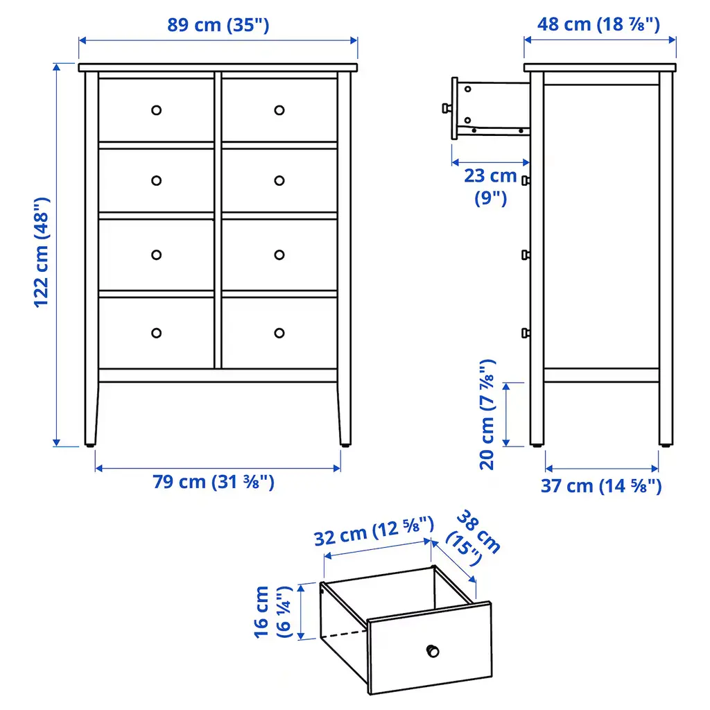 GULLABERG 8-drawer chest - white/anchor/unlock function 35x18 7/8x48 ". Our safety feature Anchor and unlock enhances the safety of your chest of drawers by significantly reducing, but not completely eliminating, the tip-over risk. Wooden knobs enhance the genuine and traditional look.