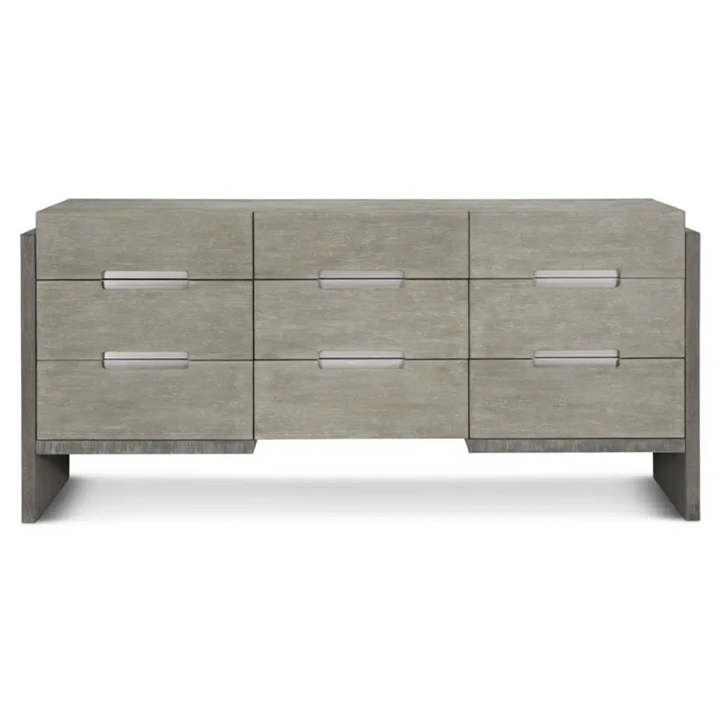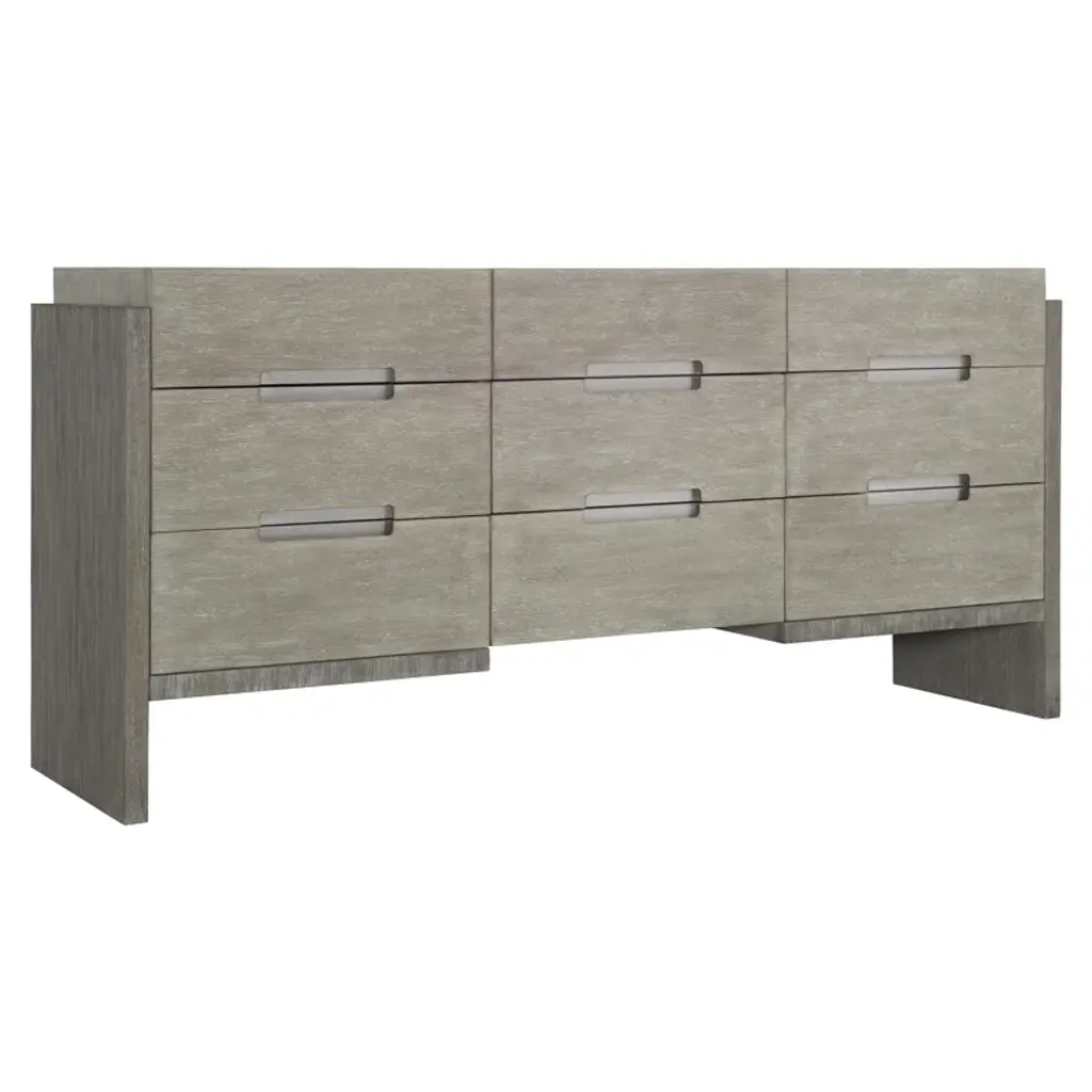 Stash your stuff in style with the dresser in wood and metal. The six-drawer dresser possesses a casual yet sophisticated persona perfect for today’s urban dwellings. It comes in sable brown finished pine with textural appeal and a gray mist metal base.