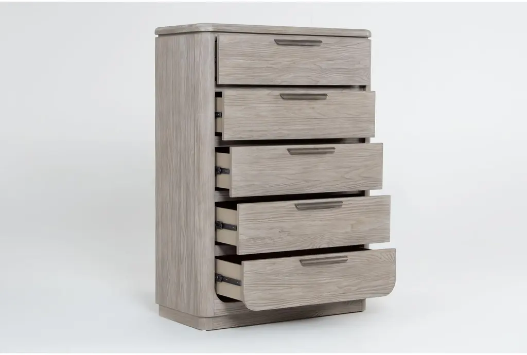 Taking a subtle approach to traditional style, our Harland chest of drawers allows you to enjoy classic taste with a modern twist. Featuring solid pine, it brings natural beauty, authenticity and quality with wood that offers versatility, durability and unique characteristics. Curved detail lends soft elegance for a look that is graceful and distinctive. Appointed with streamlined weathered pewter hardware, the drawers are constructed with dovetail joinery and side-mount ball-bearing guides for smooth operation. The top drawer is felt-lined and the bottom drawer is cedar-lined. You will love having this chest of drawers in your bedroom.