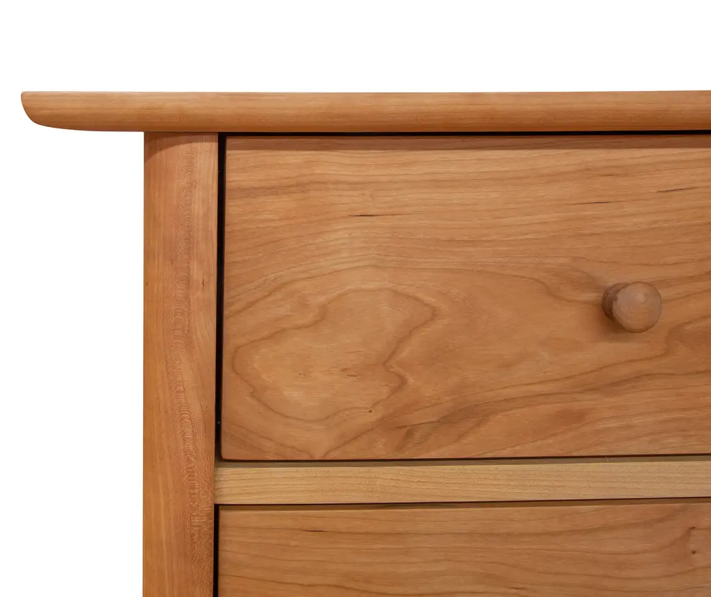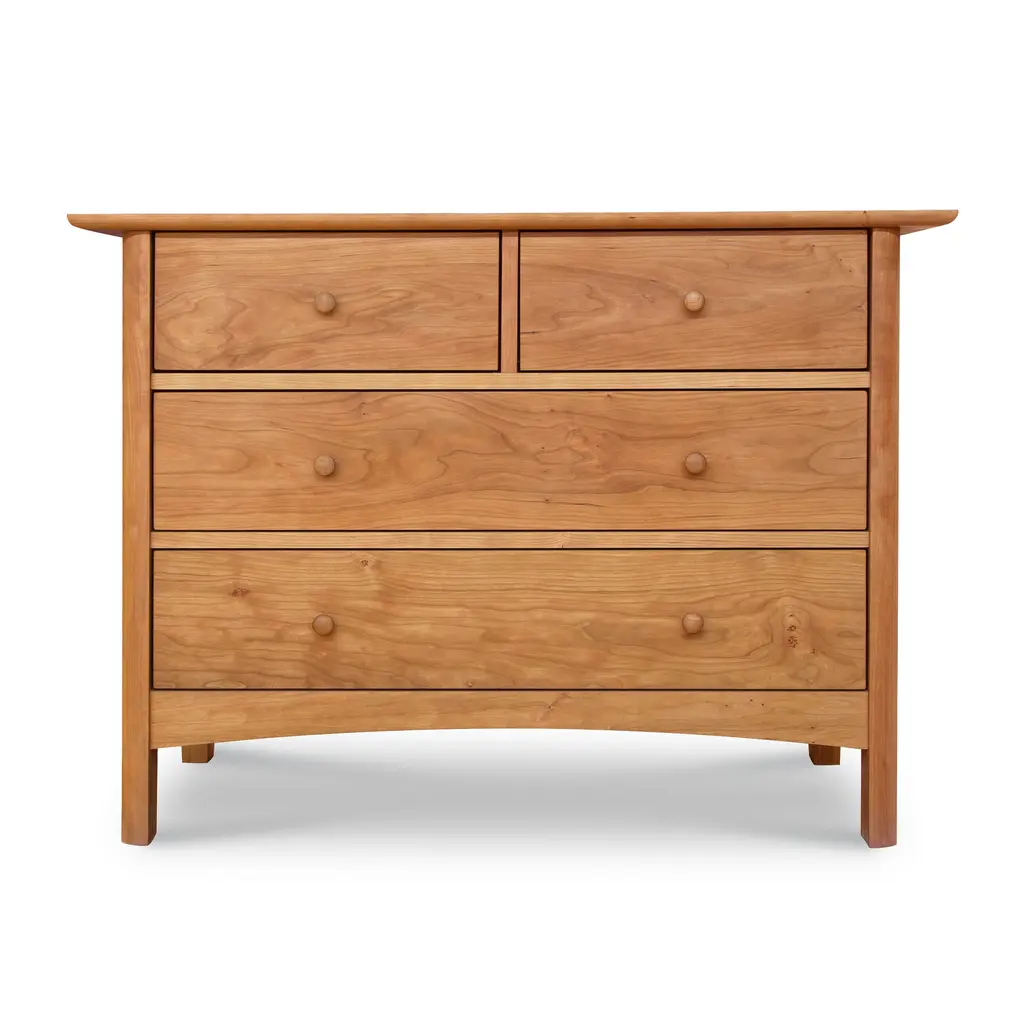Our luxury solid wood Heartwood Shaker 4-Drawer Dresser is one of our most popular designs. It features two small drawers over two wide drawers making it perfect for your contemporary bedroom. All our Heartwood Shaker dressers are handcrafted to order in Vermont in your choice of solid cherry, maple, or walnut woods with a eco-friendly oil finish that not only protects but enhances beauty of the wood. Heirloom quality, built to last for generations. Base price represents dresser in natural cherryShown in natural cherryMatching furniture available in our Heartwood Shaker Furniture Collection
