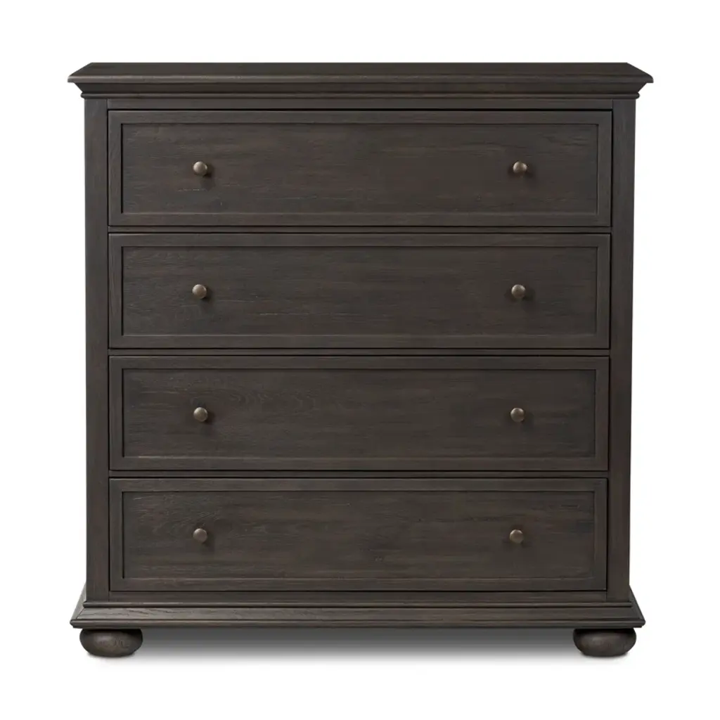 Generously scaled Five Drawer Chest featuring hammered pilasters; and intricately designed base rails. A relaxed traditional style constructed of Solid Oak American-grown hardwood. Weight 188.000 lbs. (84.6kgs.)