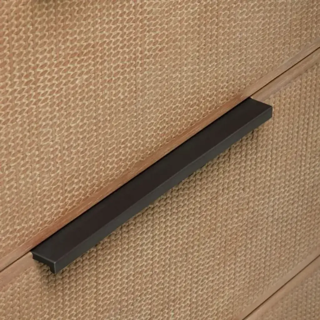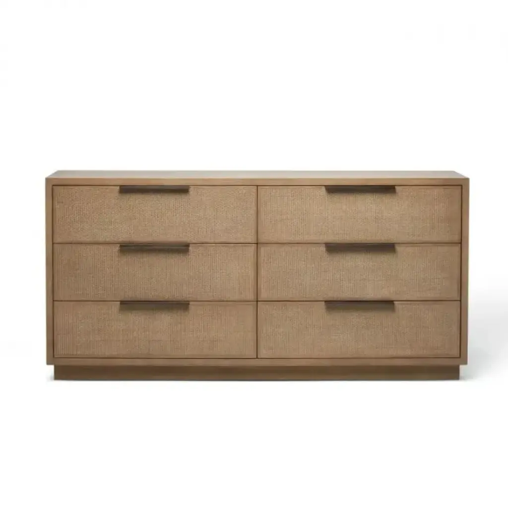 Crafted of oak in a harvest finish and featuring rattan drawer fronts, the Holmes 6 Drawer Chest delivers organic texture and natural flair. This item is made of solid wood. Item will not be exactly as pictured, subtle deviations in hue after finishing can be expected as a result of natural variations in coloration of the base material.