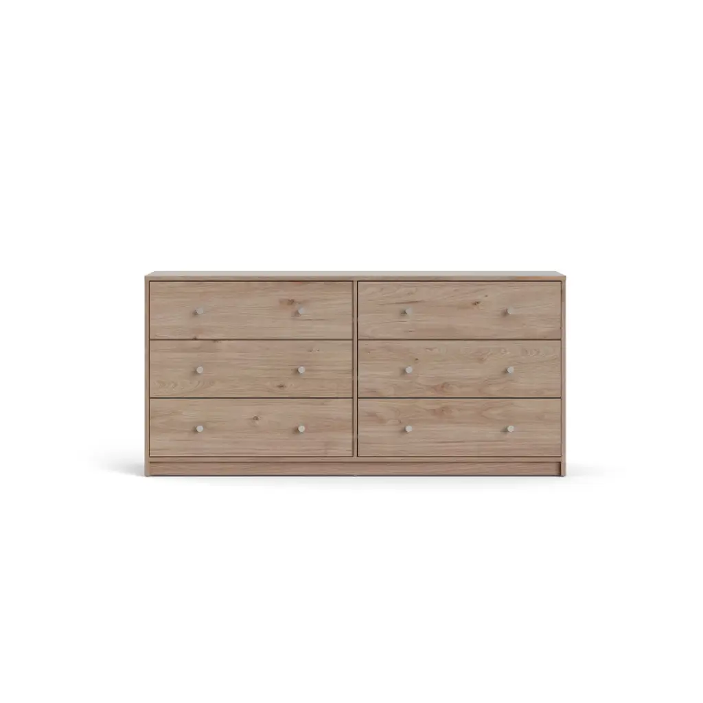 Keep your wardrobe organized and stylish with the Portland 6-Drawer Double Dresser. Designed with clean lines and a smooth finish, this simple yet sophisticated piece complements any décor. Its six high-sided drawers offer spacious storage, making it a versatile addition to a kid’s room or master bedroom. Crafted with traditional Danish design, it features a fade-resistant, easy-to-clean foil surface for long-lasting durability. Pair it with other Portland collection pieces to create a cohesive and elegant look in your space.