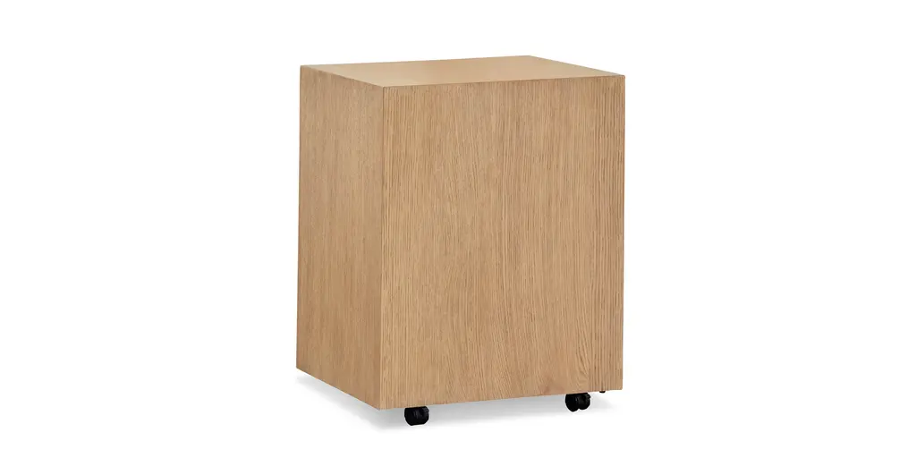 The triptych-like symmetry of the HomeWork 3 Drawer Chest adds another stack of stylish organization to your home office. Set on casters for easy mobility, its dimensions allow you to slide it right under the table desk. The modular unit provides expanded possibilities for a workspace that can still maintain a clean faade and minimized footprint. Like the rest of the pieces in the collection, the quarter-sawn White Oak veneer is finished on all sides and available in the same 3 color options.