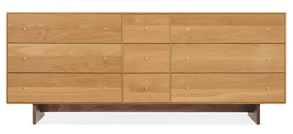 Built to be rock solid, this modern dresser with wood base is handcrafted in West Virginia by skilled artisans, who sign the back of each piece. The natural grain of sustainably sourced U.S. solid wood is the perfect backdrop for the sleek, timeless design of this collection.
