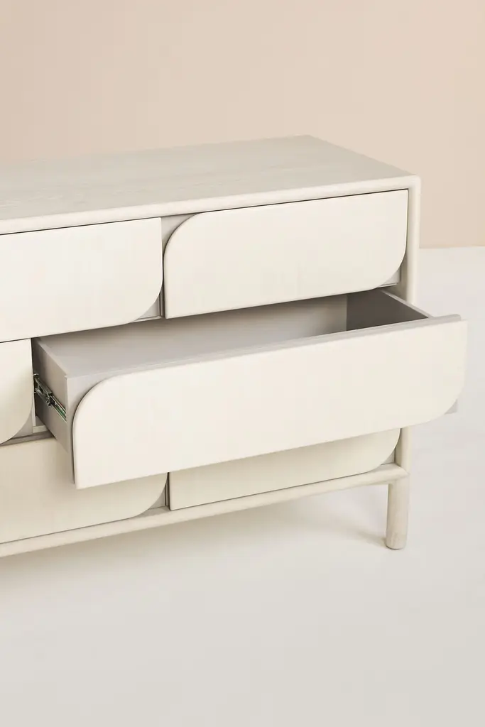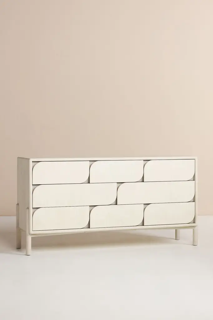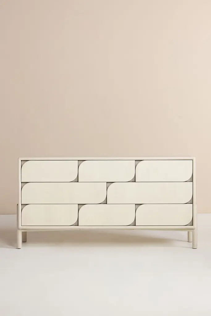 Rendered entirely in oak wood, this dresser features eight shaped drawers exuding a sense of movement that's worthy of a double-take.For ordering assistance and more, please contact us. For aesthetic advice and tips to help decorate your space, enjoy our complimentary home styling services.For more information on the materials and techniques of this piece, click here.