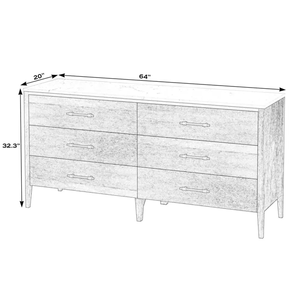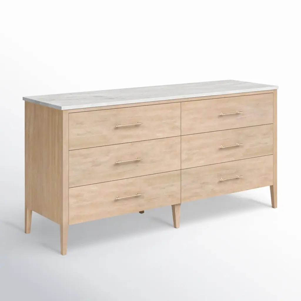 Isa 6 Drawer 64'' W Double Dresser With Marble Top