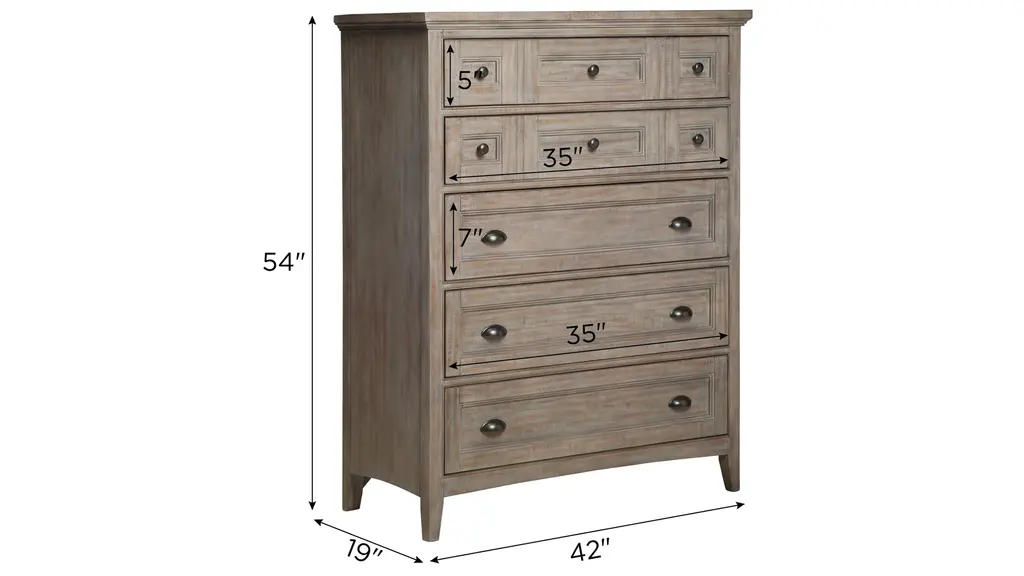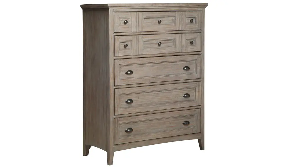 The Ivy Ridge Drawer Chest is accented by weathered bronze hardware that displays the beaded and framed panel drawers over straight inspired legs handsomely. Whether in a second home, a casual city abode or in the suburbs, this collection offers plenty of drawers to stow your togs.