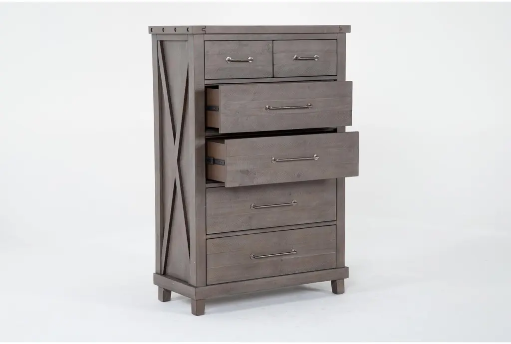 Jaxon Grey Wood 57" Tall 6 Drawer Chest | Pine