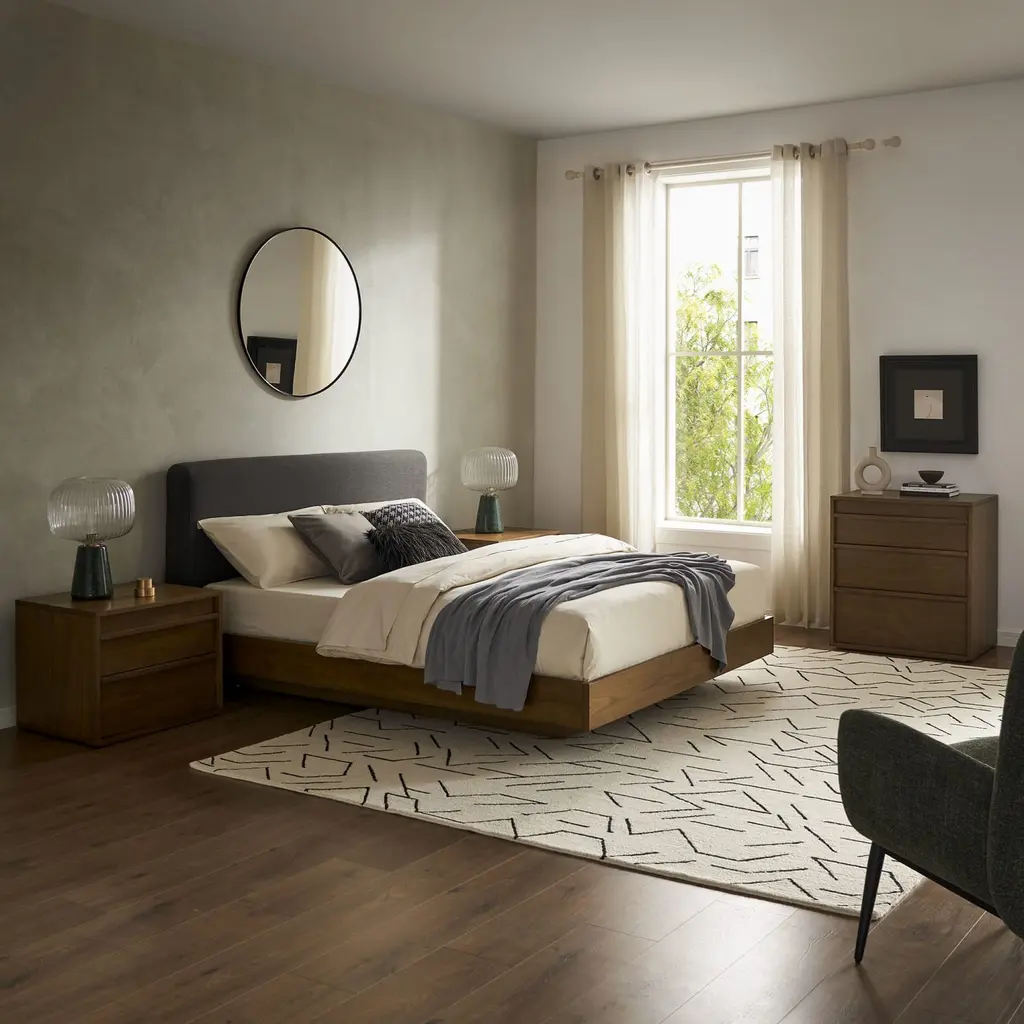 Joseph is characterized by modern walnut tones and low, expansive proportions for a trendy yet steadfast presence.