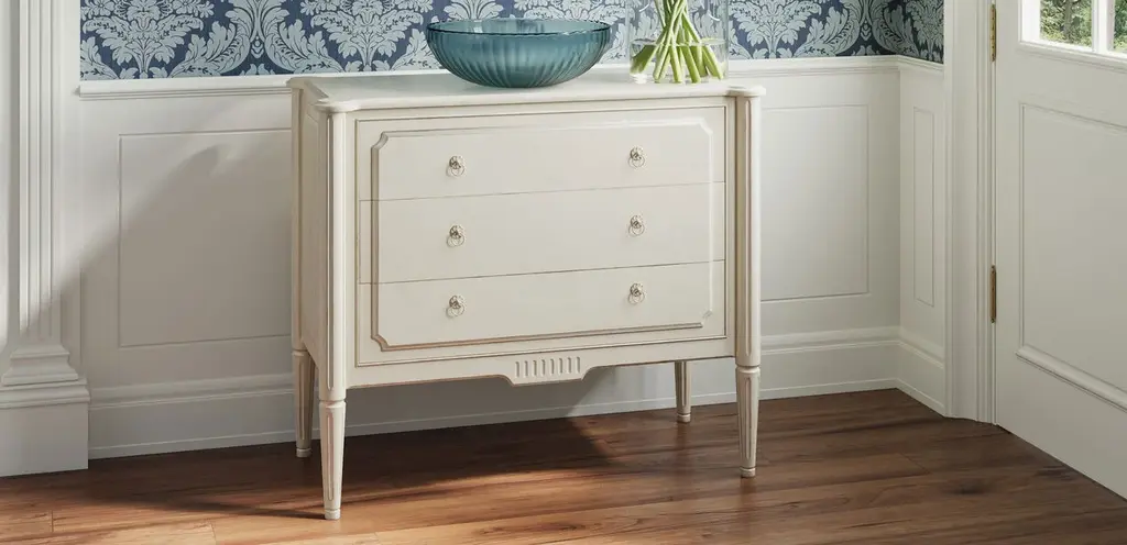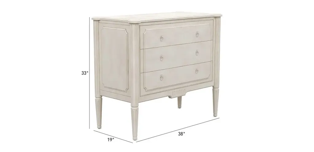 Clean, simple, and beautiful. Inspired by eighteenth century French antiques we saw in Paris, the Julian chest is elegantly fashioned with rounded corners and fluted legs. With three drawers, it’s a stylish storage solution for many settings.
