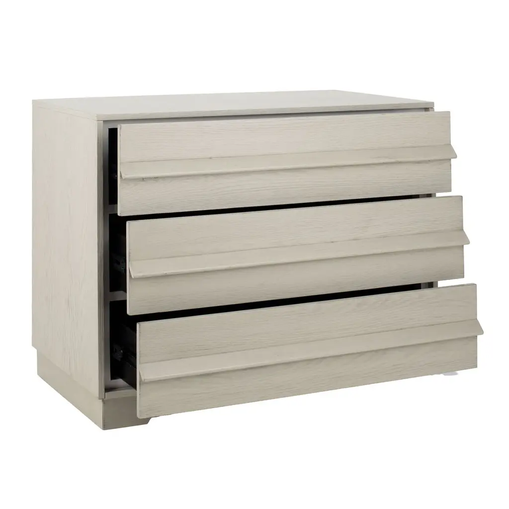 Keep your home organized with our sleek and refined Kaiah chest. Defined by a minimalistic profile and functional details, our chest vouches for a streamlined and elevated look. It beautifully highlights the rich grains of Oak veneer to keep the look sleek and sophisticated. Finished off with slim and seamless handles, our chest brings effortless style to work with a variety of settings. It can befit any corner of your home, providing 3 roomy drawers to keep all your belongings and knick-knacks organized.