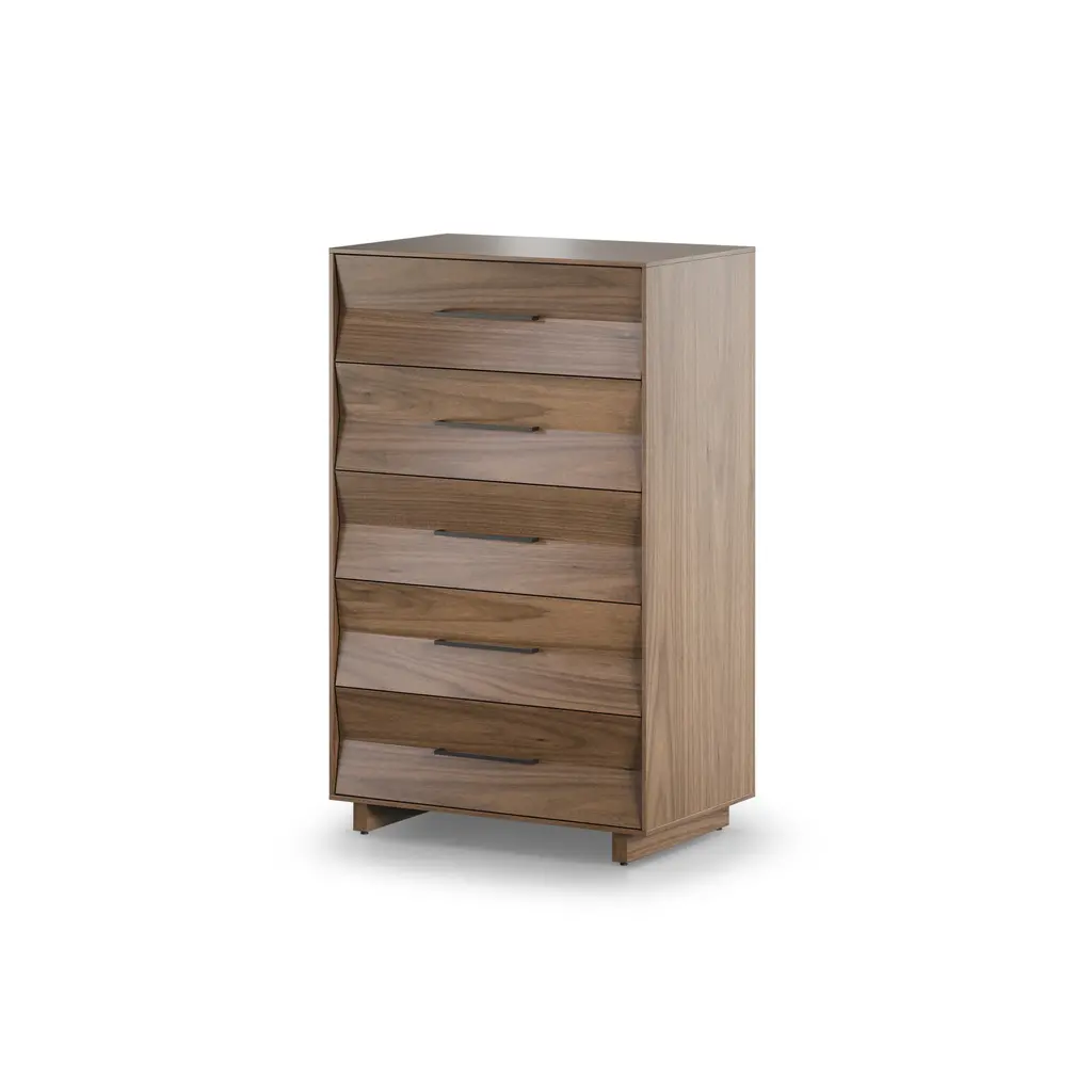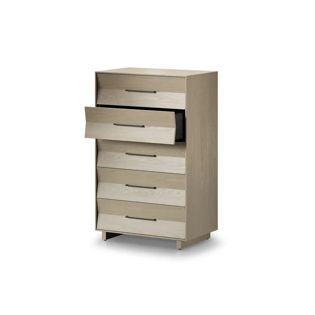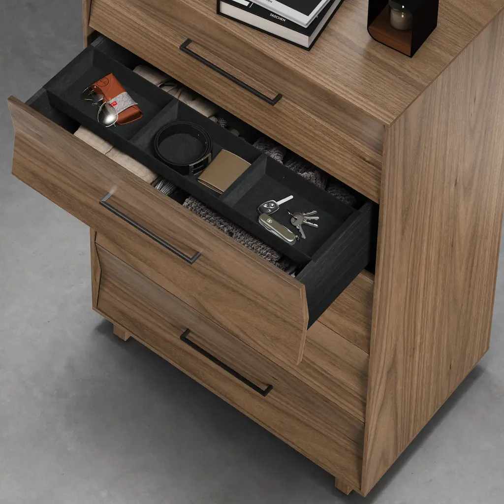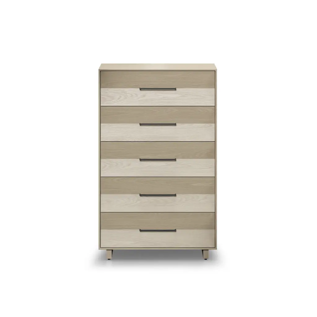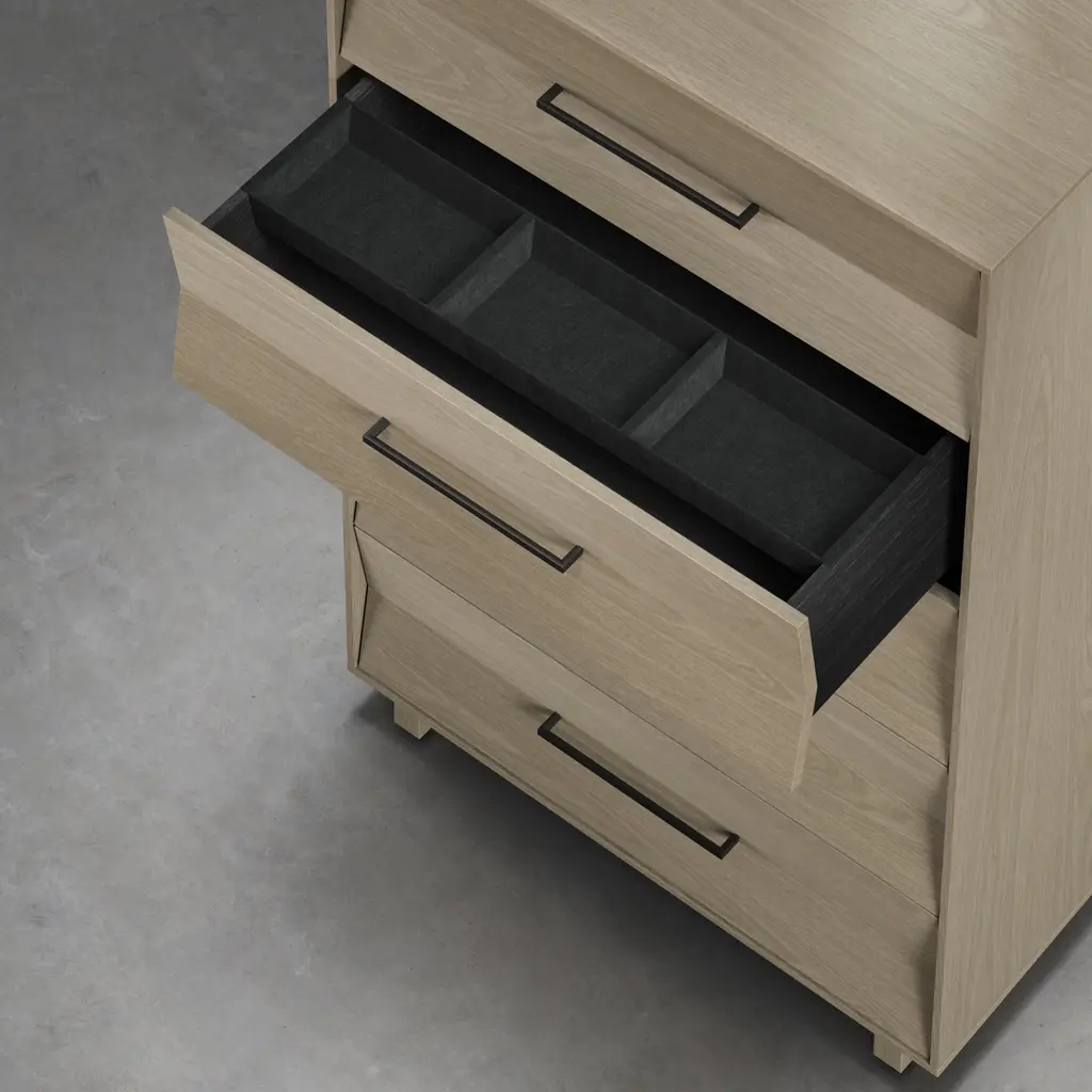 A sleek and space-efficient vertical storage solution, the Kava 5-Drawer Chest from BDI brings intelligent function to the modern bedroom. This chest offers spacious storage with five full-extension, soft-close drawers. For added peace of mind, a STURDY-compliant interlock system prevents tip-overs. The top drawer includes a removable, velvet-lined tray for smaller essentials, while textured interiors add a refined touch. A fusion of minimalist style and smart safety, it’s a beautifully designed and functional piece. Highlights: