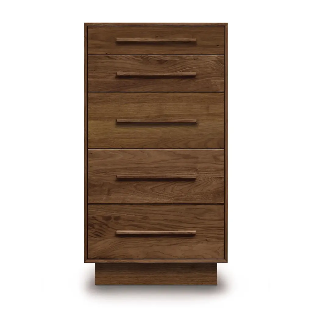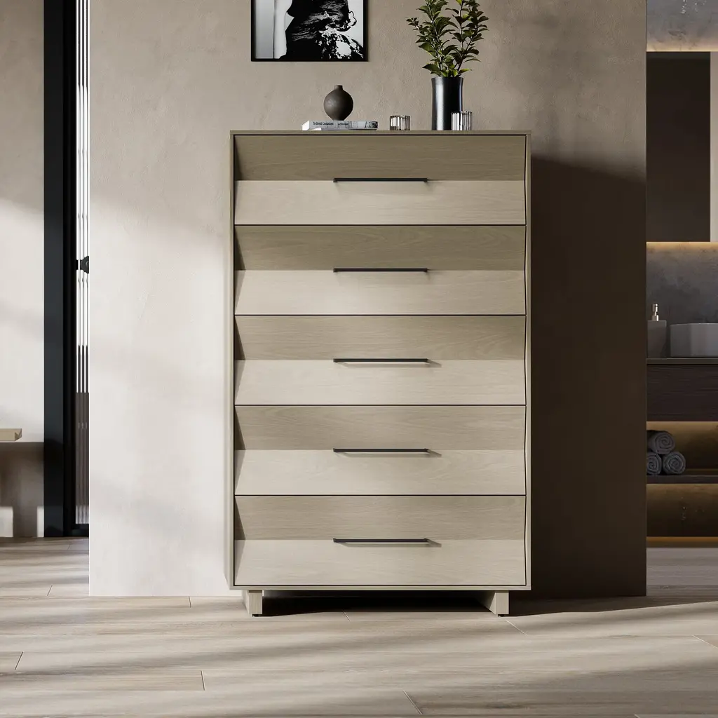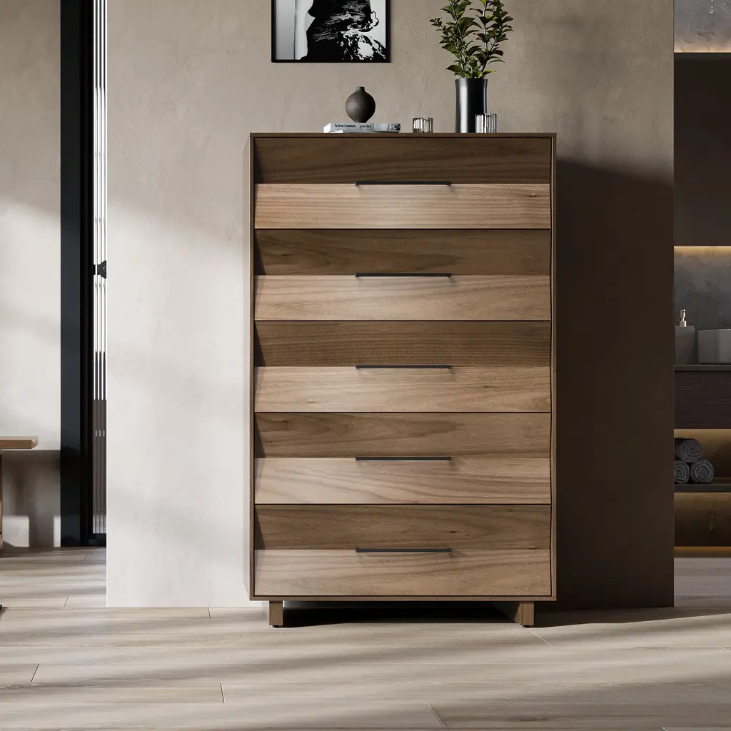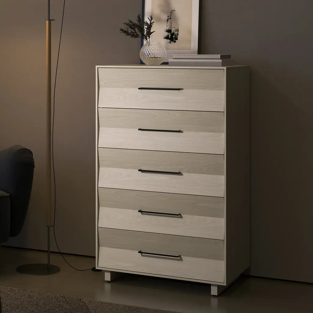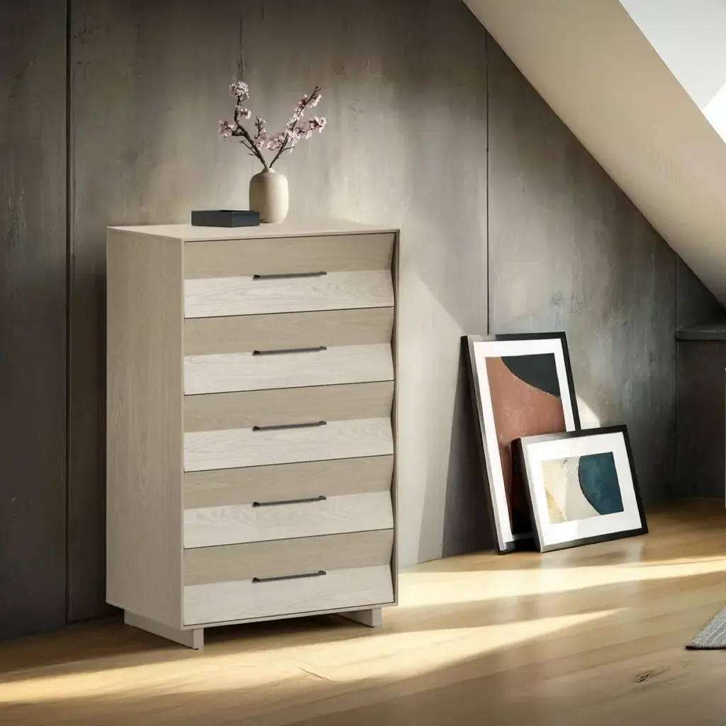 A sleek and space-efficient vertical storage solution, the Kava 5-Drawer Chest from BDI brings intelligent function to the modern bedroom. This chest offers spacious storage with five full-extension, soft-close drawers. For added peace of mind, a STURDY-compliant interlock system prevents tip-overs. The top drawer includes a removable, velvet-lined tray for smaller essentials, while textured interiors add a refined touch. A fusion of minimalist style and smart safety, it’s a beautifully designed and functional piece. Highlights: