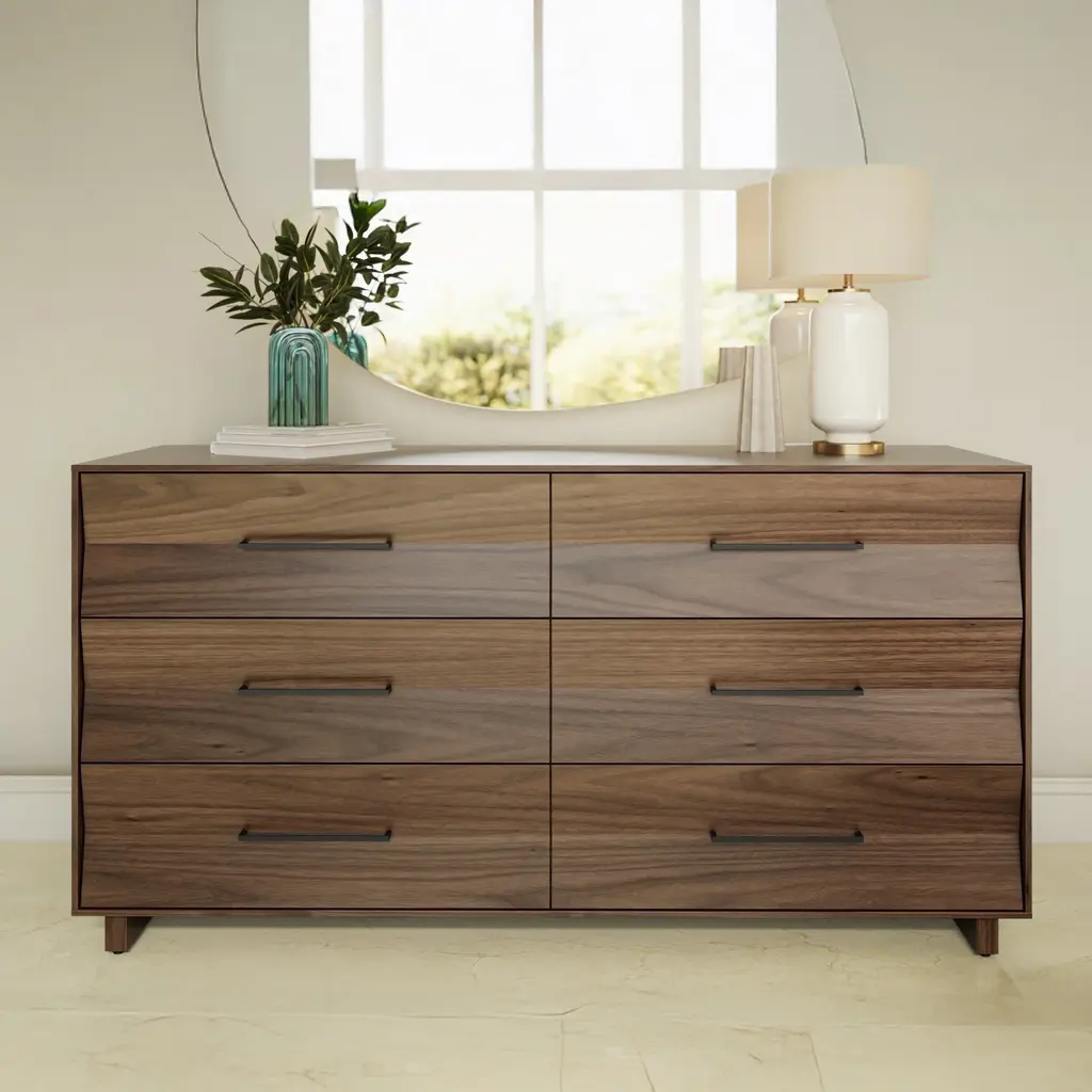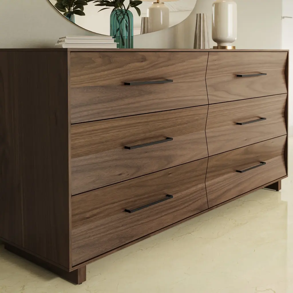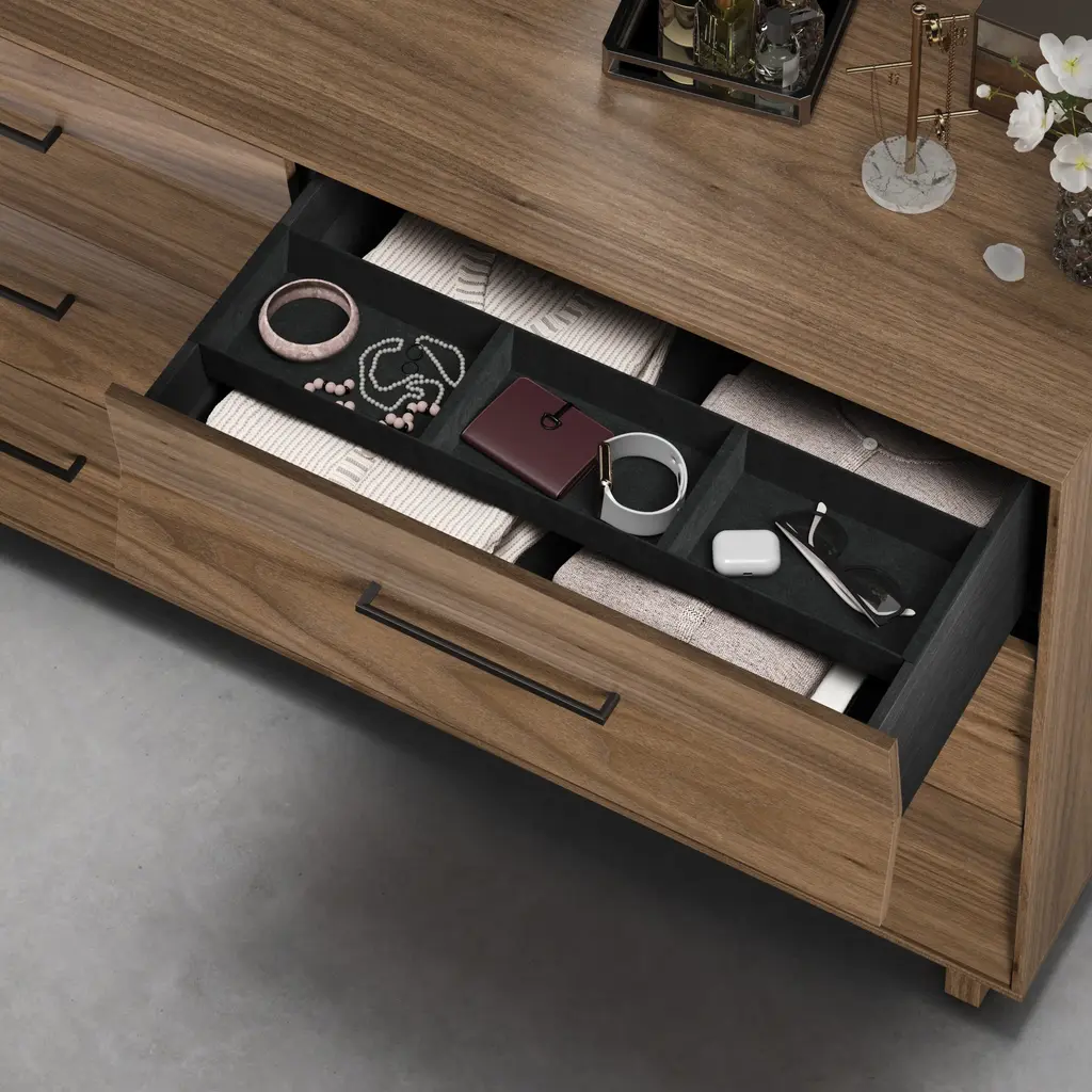 A smart and sophisticated storage solution, the Kava 6-Drawer Dresser from BDI is engineered for modern function and peace of mind. This beautiful dresser features six spacious, soft-close drawers and a removable velvet-lined accessory tray. The clean, modern silhouette is built for real life, with an innovative interlock system that allows only one drawer to open at a time to prevent tipping. A fusion of intelligent design and contemporary style, it’s the perfect anchor for a safe and sophisticated bedroom. Highlights: