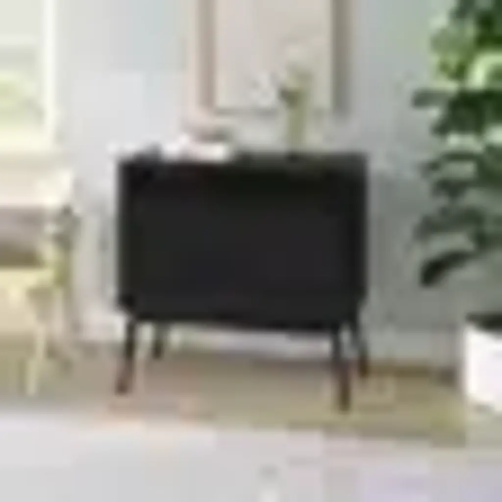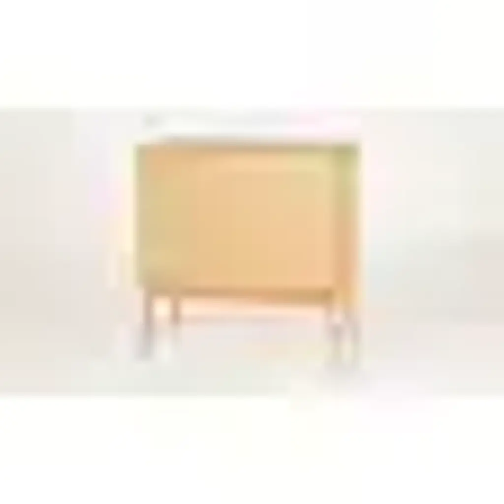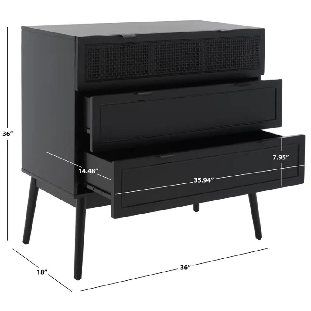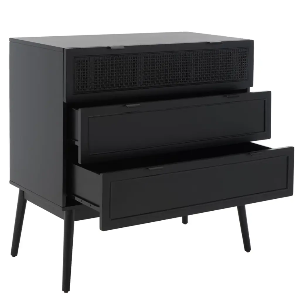 This 3-drawer chest fuses chic mid-century design elements with contemporary lines – and we love the result. It is crafted from a blend of solid mahogany and engineered wood. The slender flared legs and minimalist hardware add to the modern, on-trend vibe. A woven rattan front accents the top drawer, while the middle and lower drawers have solid fronts. They all sit on roller glides and are fully extendable, making it easy to access your items. Moreover, the surface is ideal for displaying framed photographs, collectibles, or a house plant or two for a pop of color.