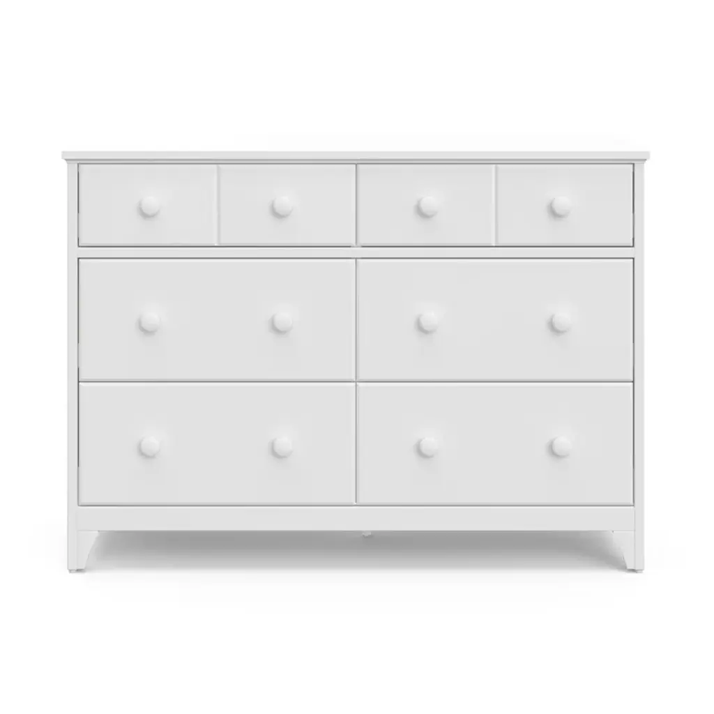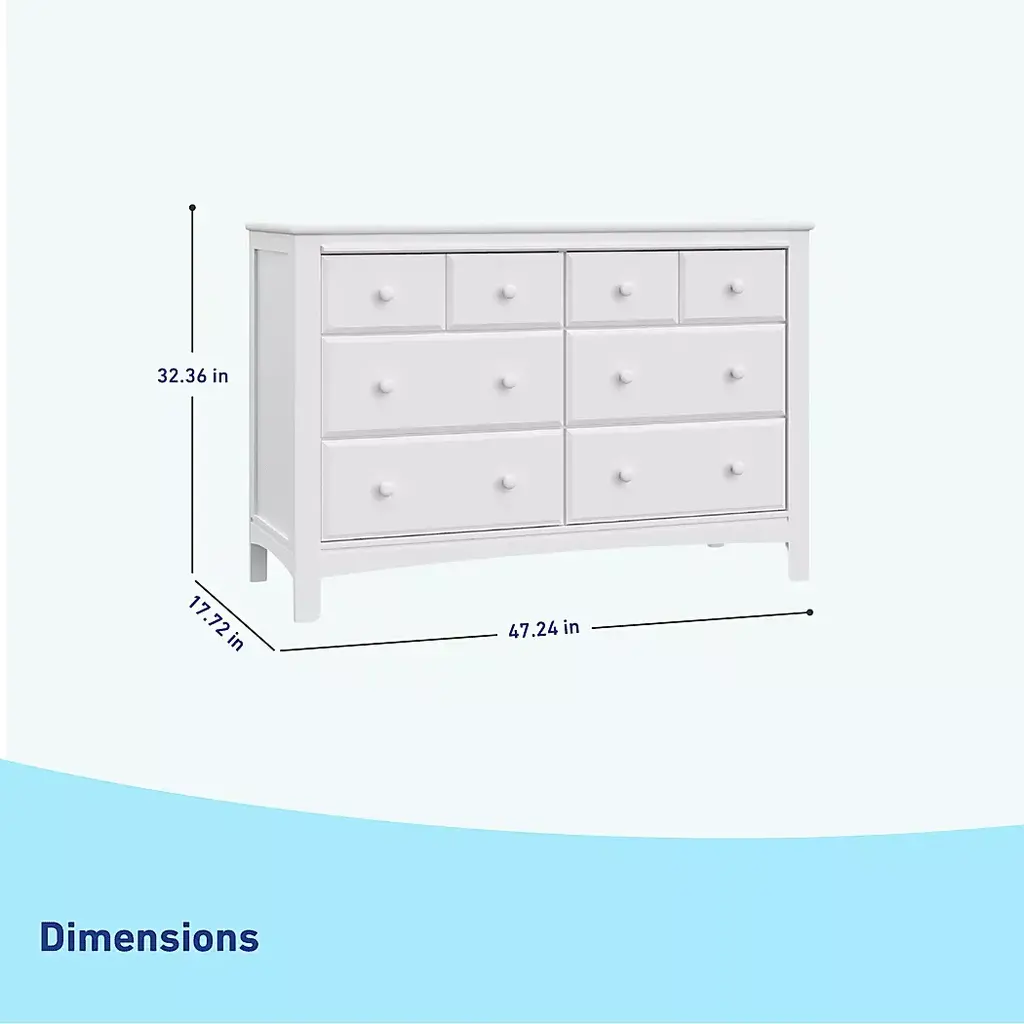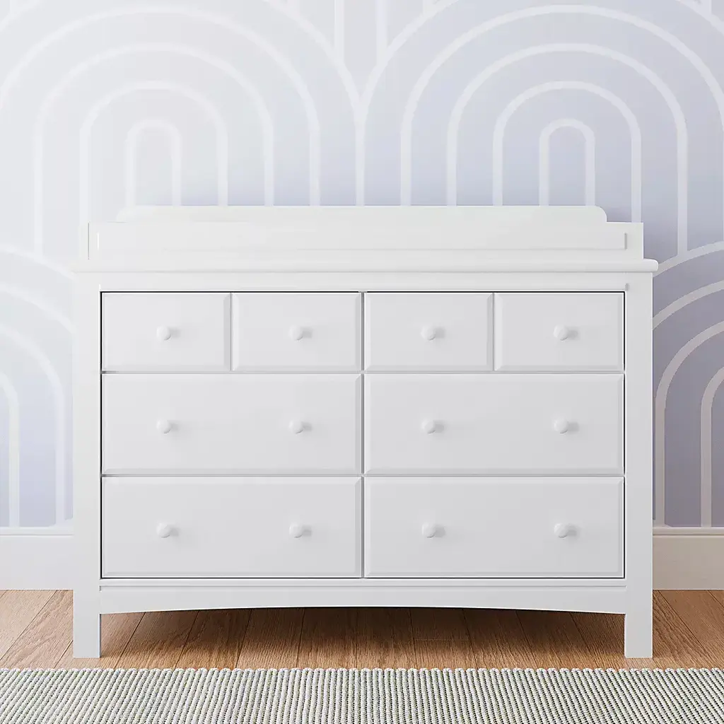 The Elun 6-Drawer Double Dresser is a versatile, space-saving piece that enhances the look of any nursery or bedroom. It features a new, simplified assembly process that saves time and requires fewer steps and tools. Made from strong, high-quality wood and composites, this dresser includes Euro-glide drawer glides. The Elun meets or exceeds all federal safety standards and complies with federal anti-tipping regulations. It is also backed by a 1-year limited manufacturer's warranty. Customer assembly is required.