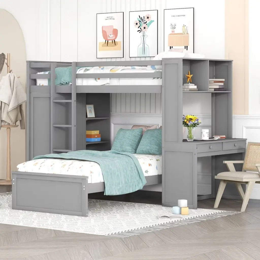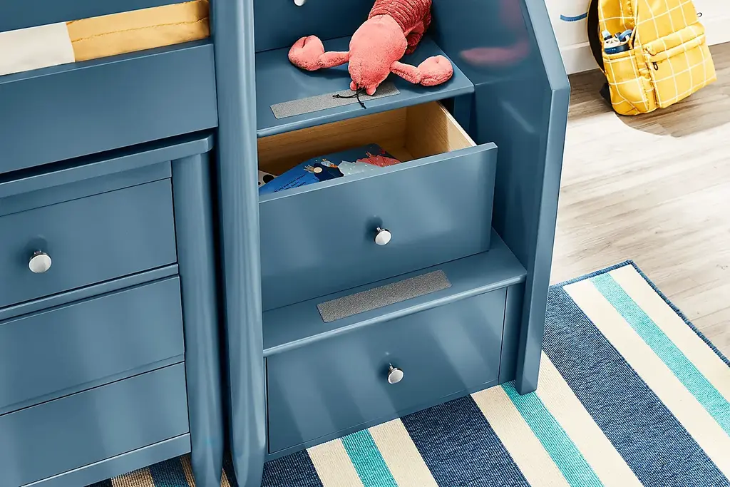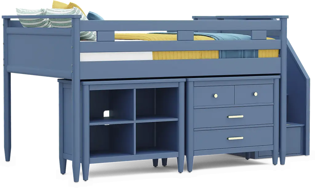 Kids Modern Colors Slate Blue Full Step Loft With Loft Chest And Bookcase
