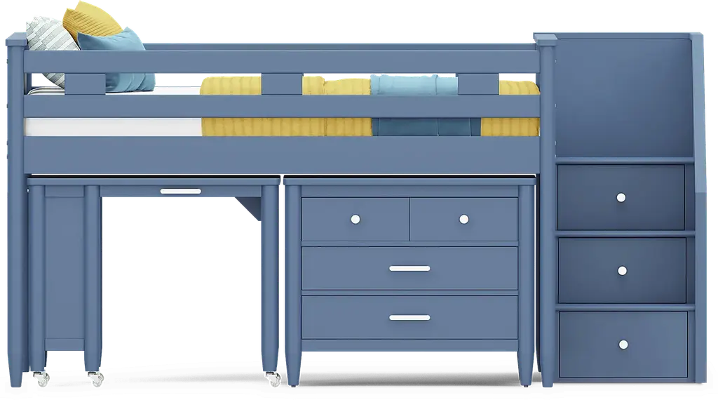 Kids Modern Colors Slate Blue Full Step Loft With Loft Chest And Desk