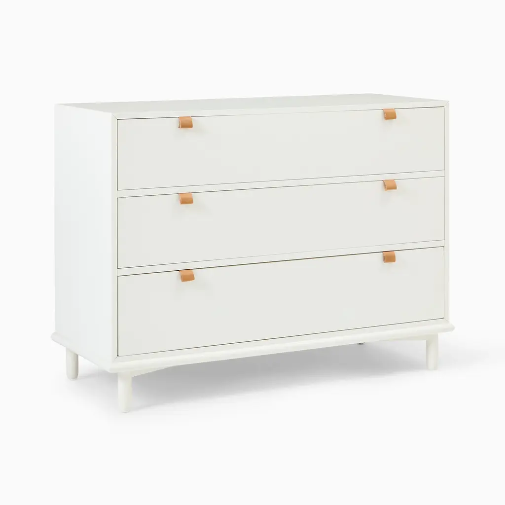 Brought to you in collaboration with Pottery Barn Kids, our Nash Nursery Collection combines Danish-inspired style with durable craftsmanship. Each piece is GREENGUARD-certified and made from wood that's kiln-dried for extra strength, complete with a child-safe, water-based finish, and features three roomy drawers. Brought to you in collaboration with Pottery Barn Kids. Kiln-dried solid and engineered wood. Covered on all sides in a child-safe, water-based finish. Natural variations in wood color and grain make each piece one of a kind. Leather drawer pulls. 3 roomy drawers open on waxed solid wood glides. Legs include built-in levelers. GREENGUARD Gold Certified. This low-emitting product has been screened for over 10,000 chemicals and VOCs. Rigorously tested to meet or exceed all required and voluntary safety standards. Anti-tip kit included: Comes with safety-tested mounting hardware, instructions and a nylon strap. To prevent injuries from furniture tip-over, this item should be securely fixed to the wall. Made in Vietnam.