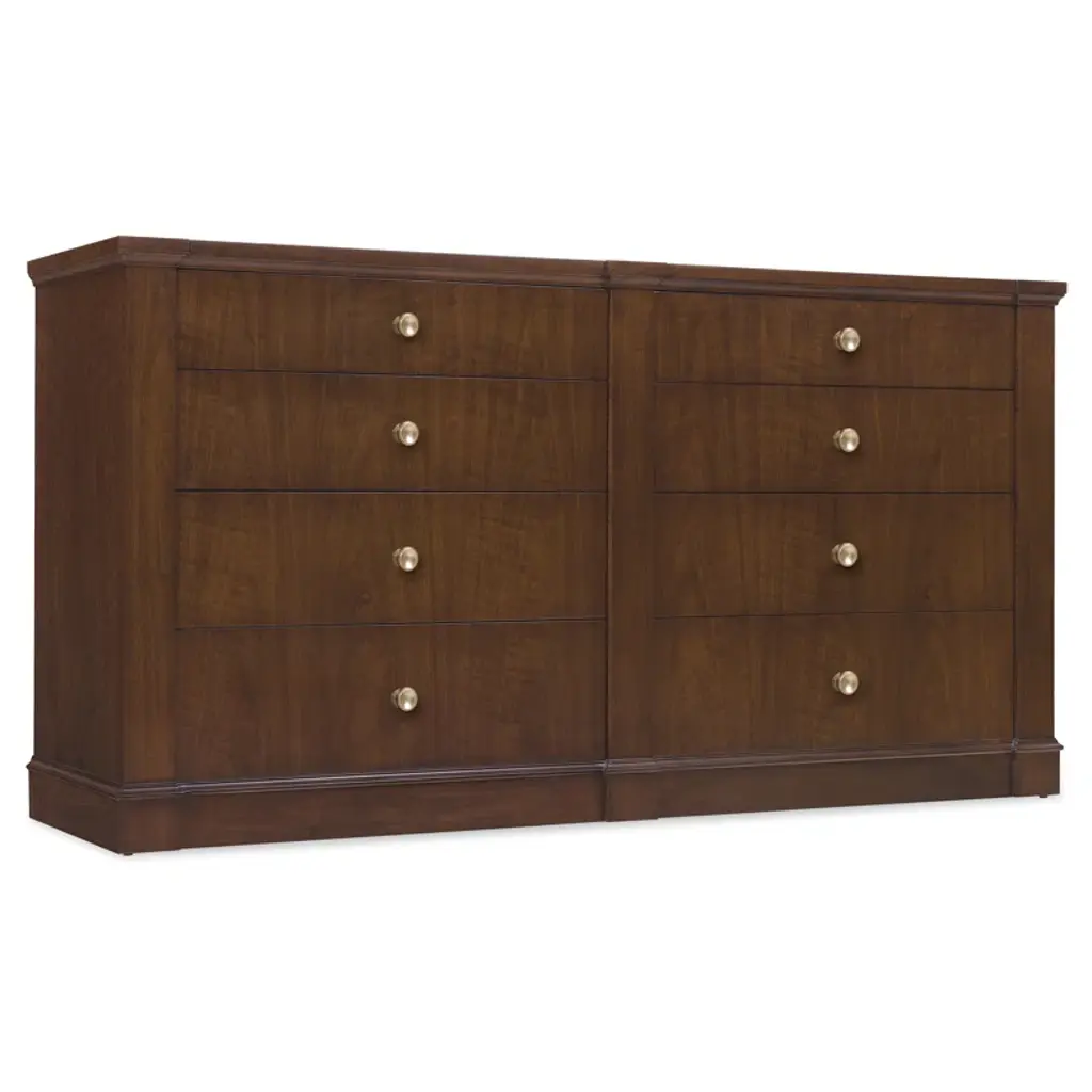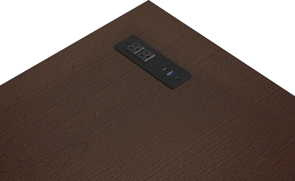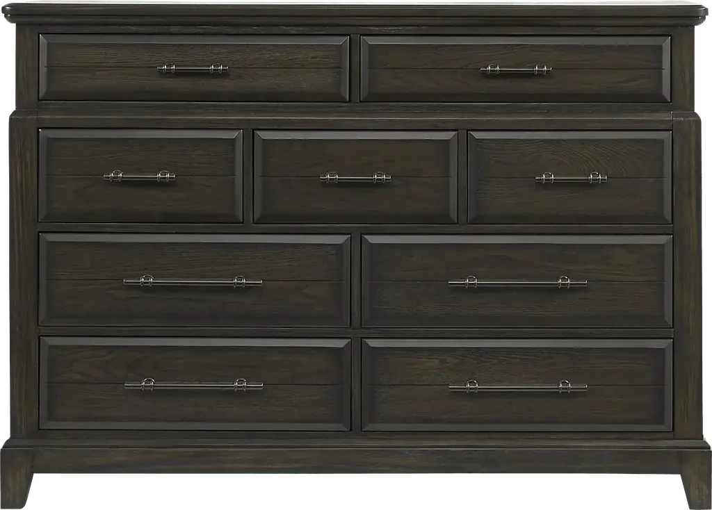 From staying up past your bedtime to oversleeping in style, the Oberon collection adds calmness and coolness to your routine. Crafted with Mindi veneers in a chocolate color, this dresser is chock full of storage for your essentials with nine drawers joined with English dovetailing in the front and back for enhanced durability and double extension glides that ensure smooth, effortless opening and closing. The top drawers provide a gentle, soft surface for accessories with felt lining on the inside. The built-in power strip includes two AC outlets, one USB-A and one USB-C fast-charging port for ultra convenience. Matte black drawer pulls complete the fantastic look.