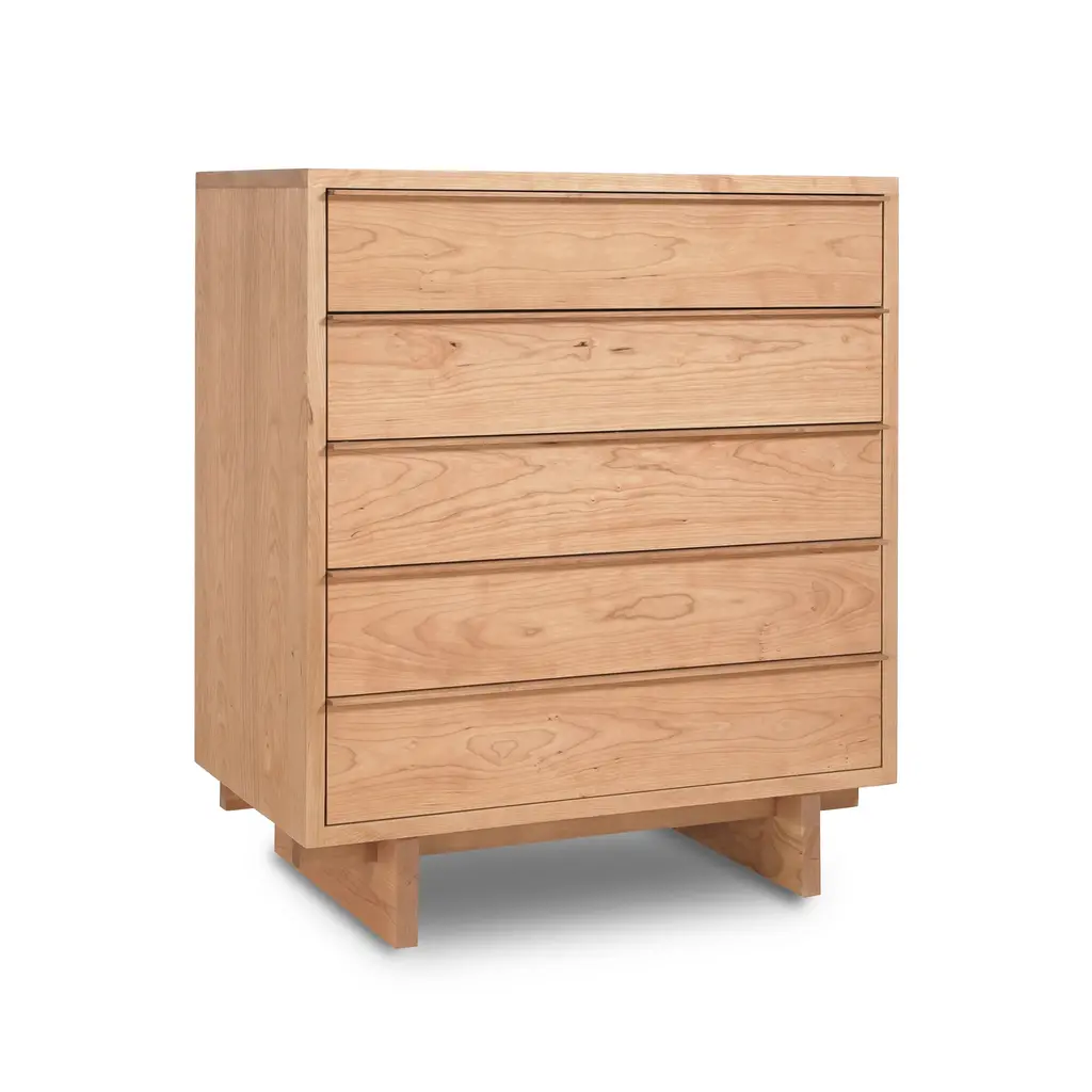 Over a century ago, Rudyard Kipling found inspiration in Vermont while living at his residence of Naulakha. This inspiration has abounded in the state of Vermont and today culminates itself in the innovative design of our Kipling 5-Drawer Wide Chest. Handcrafted in your choice of cherry, maple and walnut hardwood, this wide chest is the embodiment of genuine enduring Vermont skill and craftsmanship. Customize yours today.Base price represents chest in natural cherryShown in natural cherryMatching furniture available in our Kipling Furniture Collection