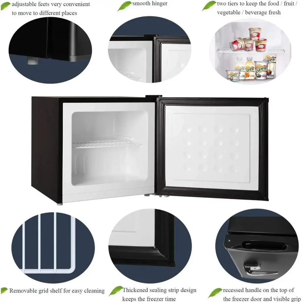 The ultimate space-saving solution, this 1.2 Cu.Ft upright freezer combines big-capacity thinking with compact design intelligence, featuring dual-tier odor-separated compartments for organized storage in kitchens, dorms or home offices. Our fully upgraded 2025 model introduces a reinforced handle, 360° adjustable feet, and military-grade sealing strips that achieve 40% faster cooling than previous generations. The modular shelving system adapts to everything from meal prep containers to beverage bottles, while its whisper-quiet operation (under 42dB) and energy-efficient performance make it ideal for round-the-clock use in sensitive environments. Every detail—from the fingerprint-resistant exterior to the tool-free assembly—is engineered for urban dwellers who refuse to compromise between storage capacity and spatial efficiency.