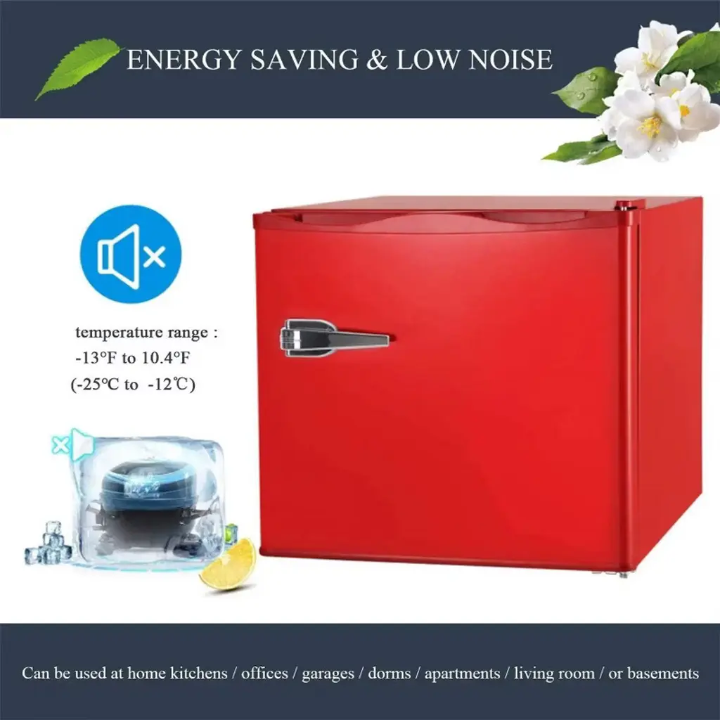 The ultimate space-saving solution, this 1.2 Cu.Ft upright freezer combines big-capacity thinking with compact design intelligence, featuring dual-tier odor-separated compartments for organized storage in kitchens, dorms or home offices. Our fully upgraded 2025 model introduces a reinforced handle, 360° adjustable feet, and military-grade sealing strips that achieve 40% faster cooling than previous generations. The modular shelving system adapts to everything from meal prep containers to beverage bottles, while its whisper-quiet operation (under 42dB) and energy-efficient performance make it ideal for round-the-clock use in sensitive environments. Every detail—from the fingerprint-resistant exterior to the tool-free assembly—is engineered for urban dwellers who refuse to compromise between storage capacity and spatial efficiency.
