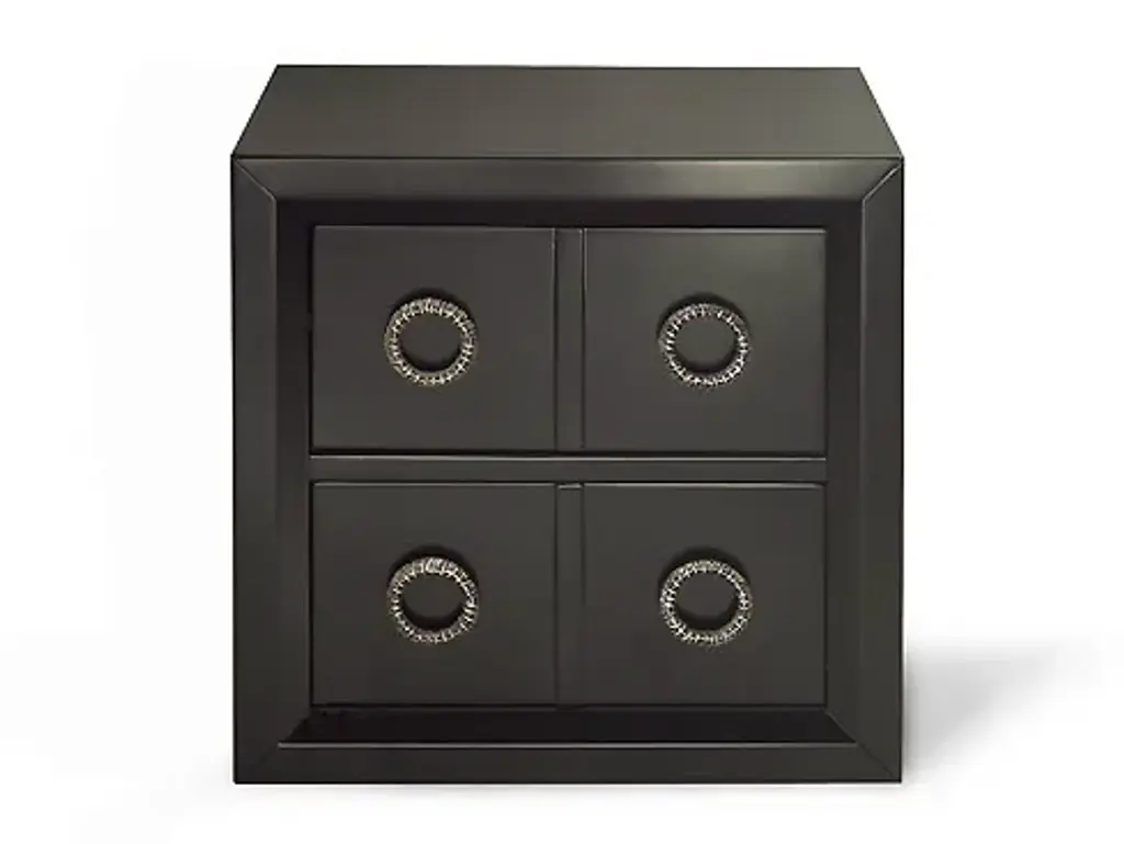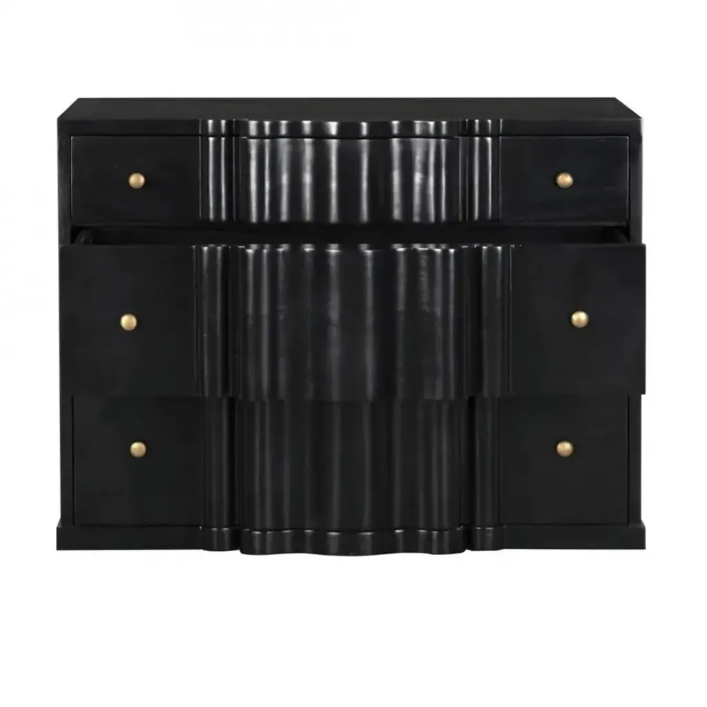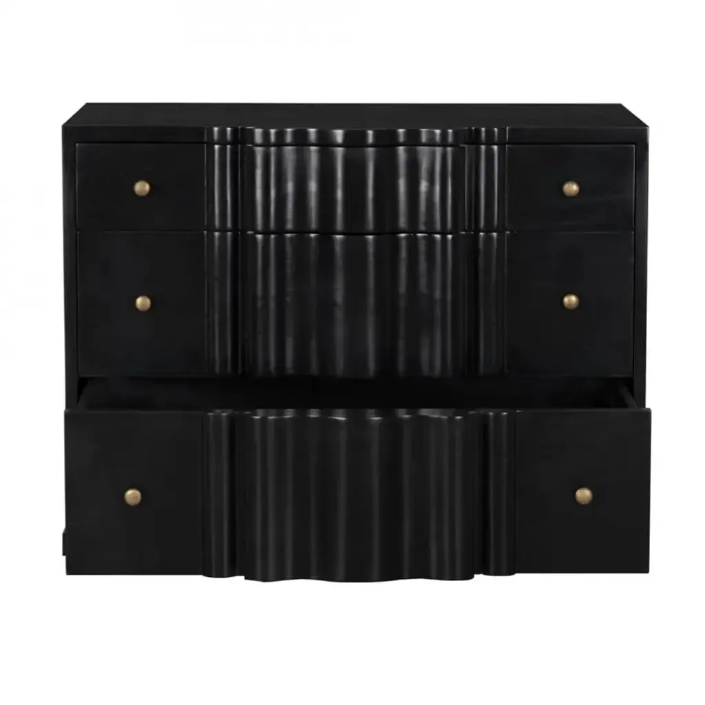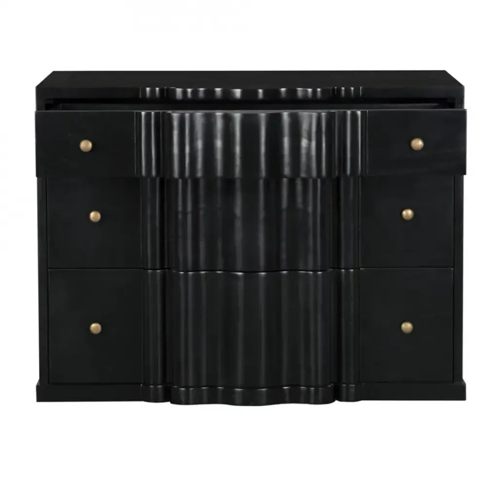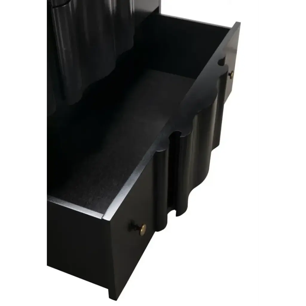 The Kiss Dresser in Hand Rubbed Black is a perfect blend of modern sophistication and classic design. Made from mahogany and veneer, its rich black finish is achieved through a meticulous hand-rubbing process that highlights the wood’s natural beauty and texture. The dresser is accented with elegant brass pulls, adding a touch of luxury to its sleek design.
