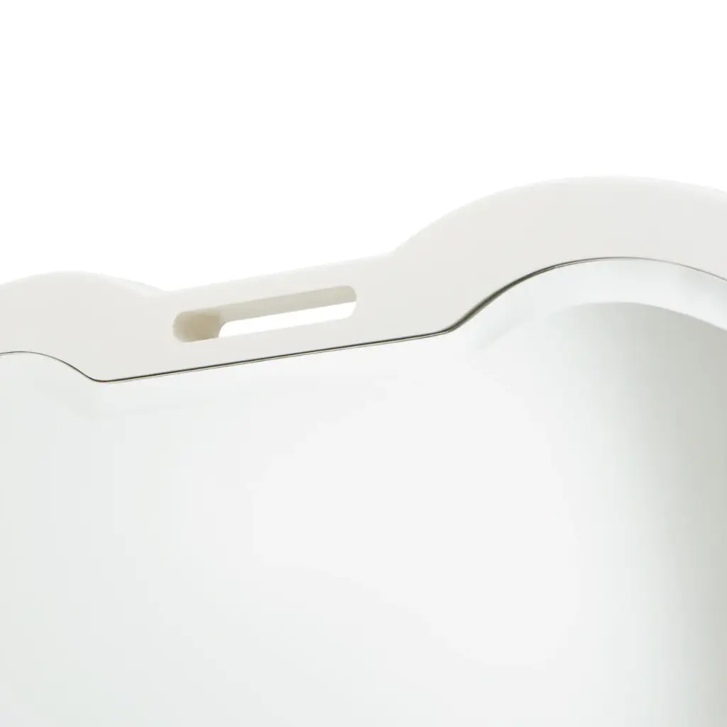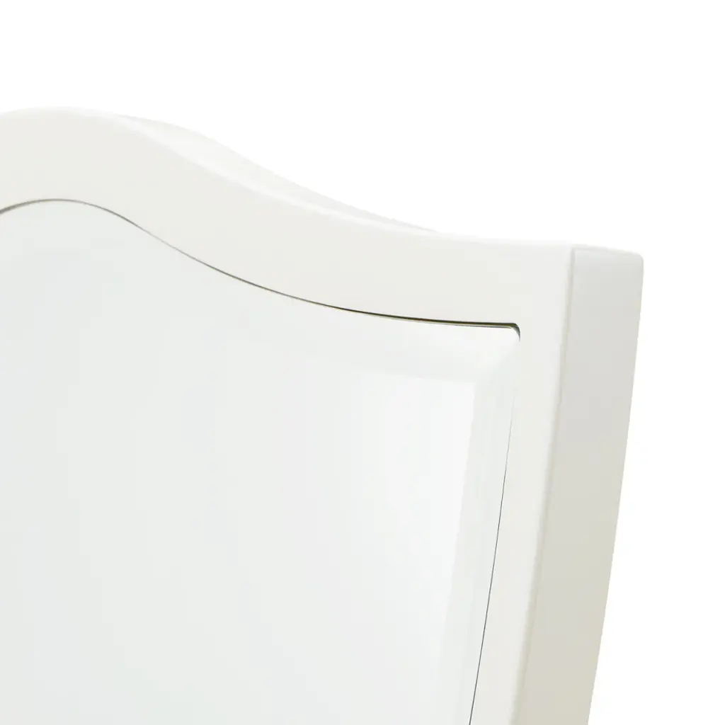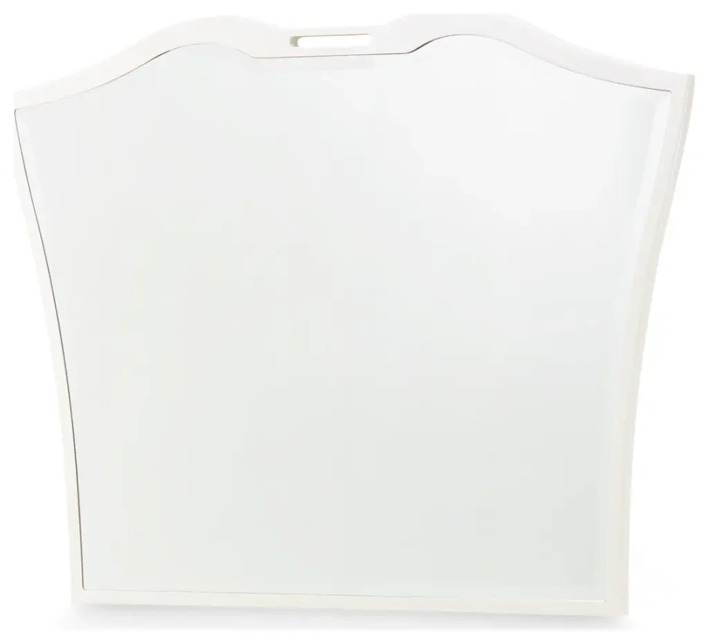 A stunning complement to the La Marisia Dresser, this mirror features a beautifully shaped silhouette that softens its refined design. Framed in a soft cream finish, its beveled glass adds depth and dimension. Designed for versatility, this mirror can be securely mounted atop the dresser or hung on a wall using the included brackets, making it a sophisticated addition to any space.