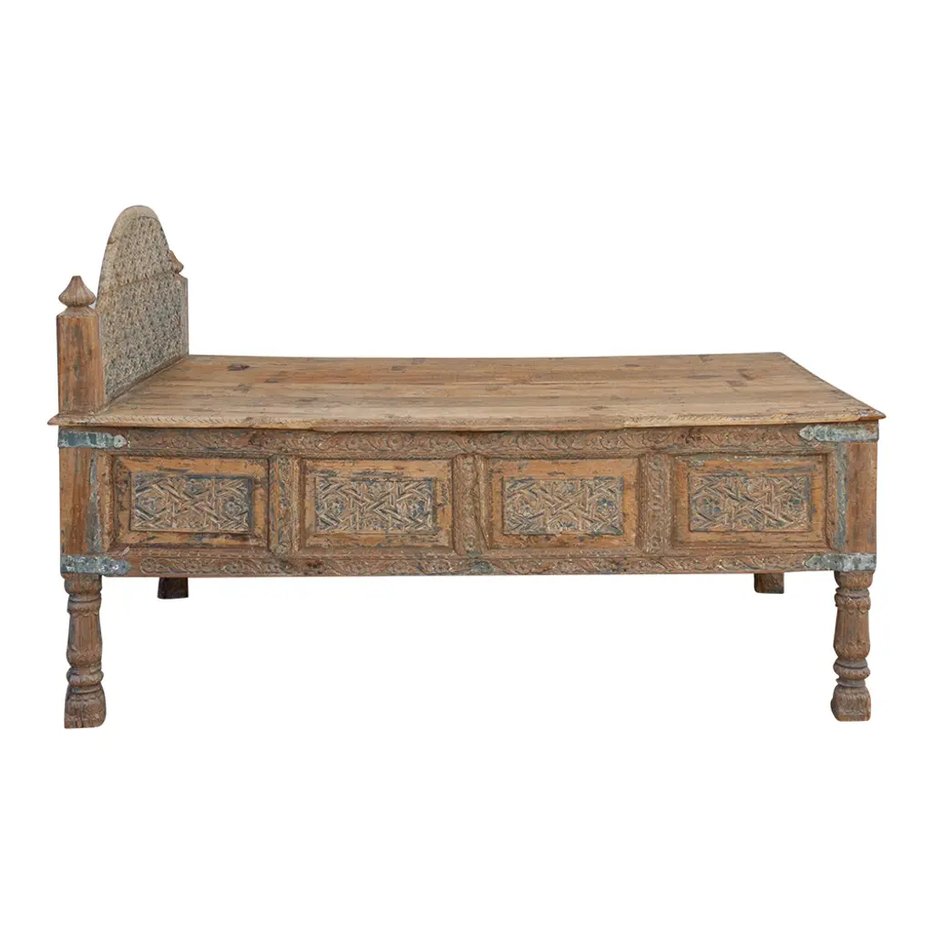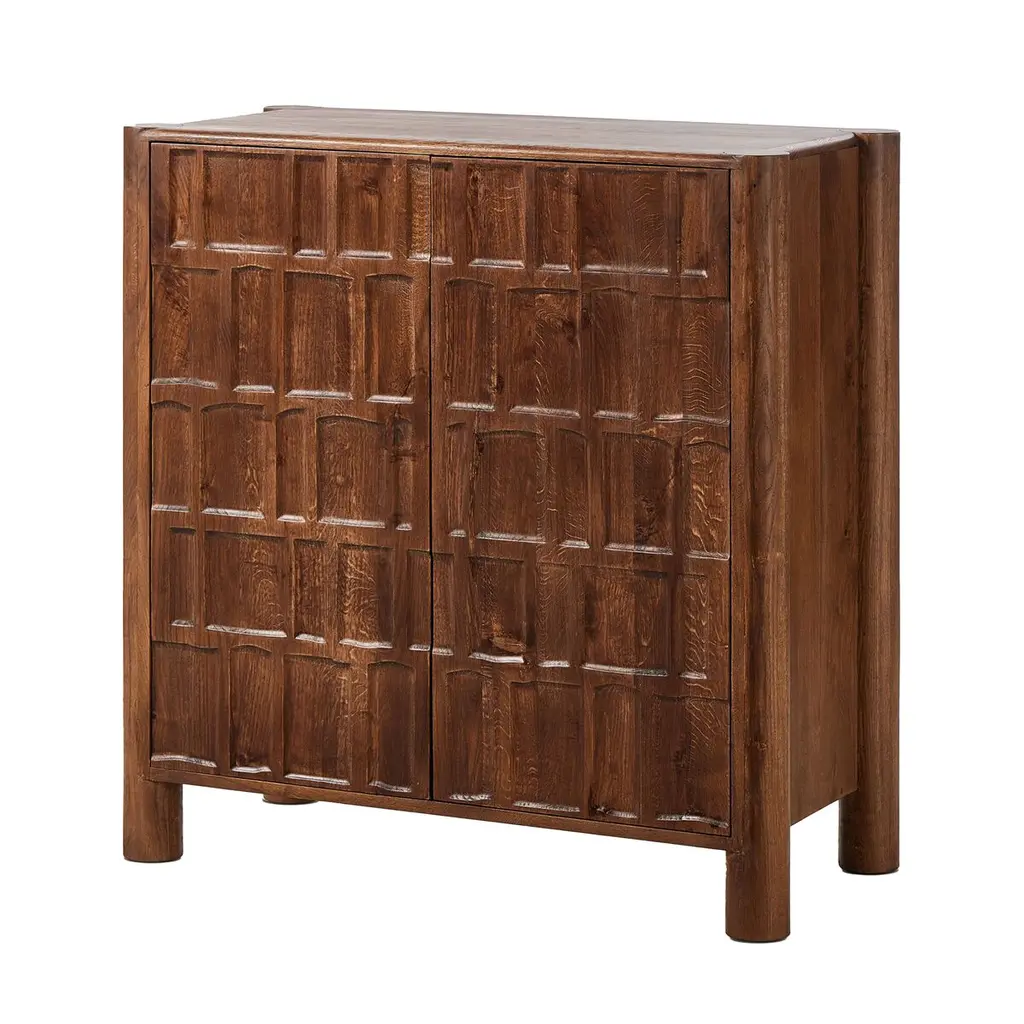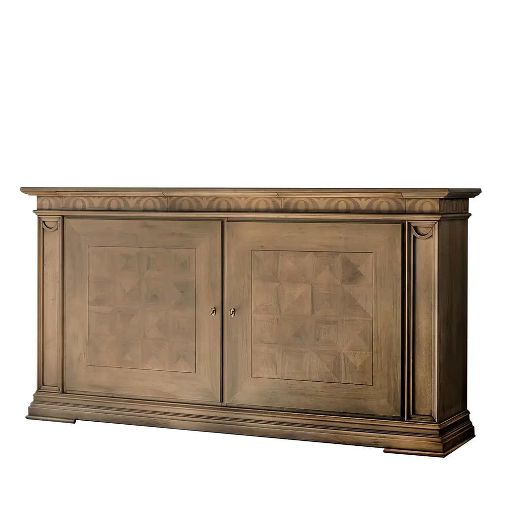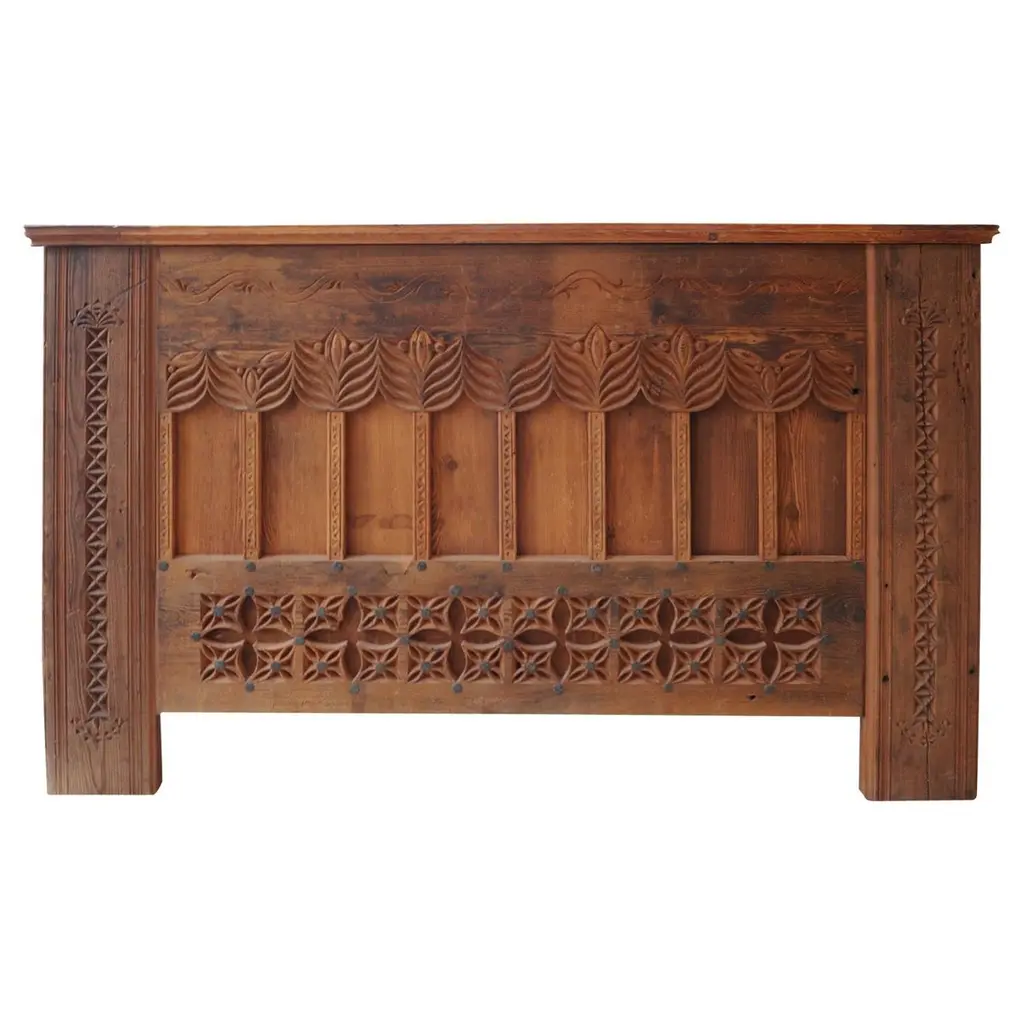 This stunning chest is an exquisite example of masterful craftsmanship and traditional design, inspired by the gothic style of the French region of Elsass. Its imposing shape was crafted of 400 to 600 years old larch and carved by hand with stunning bas-relief decorations that grace its front and size. This piece opens by simply pushing a button positioned on the side, thanks to a hydraulic system, which is also available equipped with a remote control. This chest is also available in a smaller size - please ask the Concierge for details and changes in pricing with different options.
