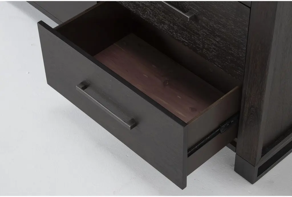 Mixing metal and wood results in a compelling marriage of materials, and our Lars bedroom collection showcases the combination in all its glory. Designed and developed by Living Spaces, these streamlined designs feature sleek steel with solid wood and acacia veneers to create a dark and handsome look that will enrich your space. Whether you want to lean more rustic or industrial in style, these pieces will play the role to perfection. With features like dovetail drawer boxes and cedar-lined bottom drawers, you can rest easy trusting in this set’s integrity and quality.